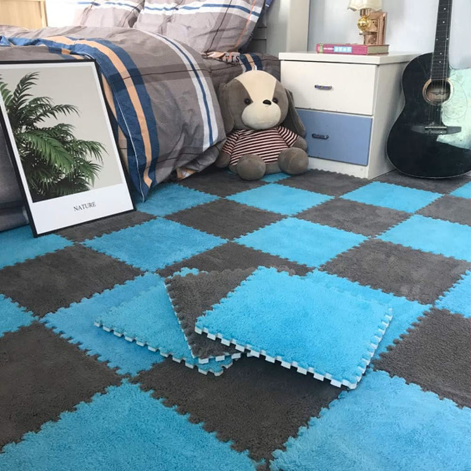 Set de 10 Covorase Tip Puzzle din Spumă EVA – Albastru
