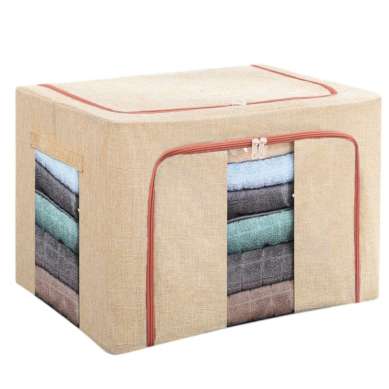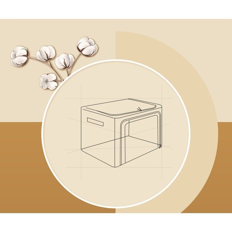 Cutie de Depozitare Pliabila, , 24 L, din Bumbac si In, 40x30x20 cm, 2 Ferestre, Frontala si Laterala, 2 Usi de Acces cu Fermoar Bidirectional, Cadru Metalic, Suport Baza Stabil din Plastic, Bej