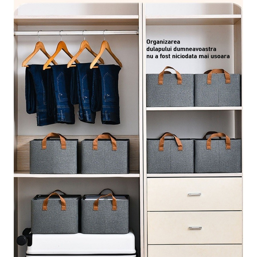 Cutia de depozitare este pliabila si este din material de bumbac și in de tip B.