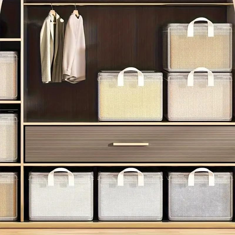 • Material textil transparent: Fabricată din material textil alb-transparent, oferă un aspect elegant și permite vizualizarea rapidă a conținutului.