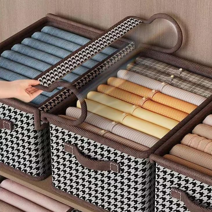 Păstrați-vă hainele și accesoriile organizate cu stil. Cutia de depozitare cu capac transparent și model în carouri este ideală pentru orice spațiu, oferind suprapunere ușoară și protecție împotriva umezelii și prafului.