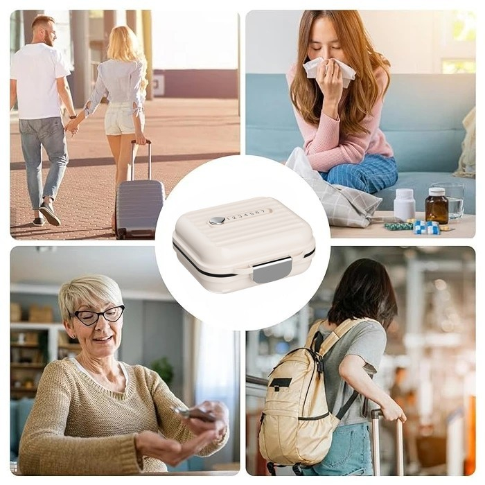 Dimensiunile compacte de 7.8x7.2x3.5 cm transforma aceasta cutie intr-un accesoriu discret si usor de transportat. Incape cu usurinta intr-o geanta, rucsac, borseta sau chiar intr-un buzunar incapator. Este alegerea perfecta pentru cei care calatoresc frecvent sau pentru cei care doresc sa isi pastreze medicamentele in siguranta, fara a ocupa spatiu inutil.