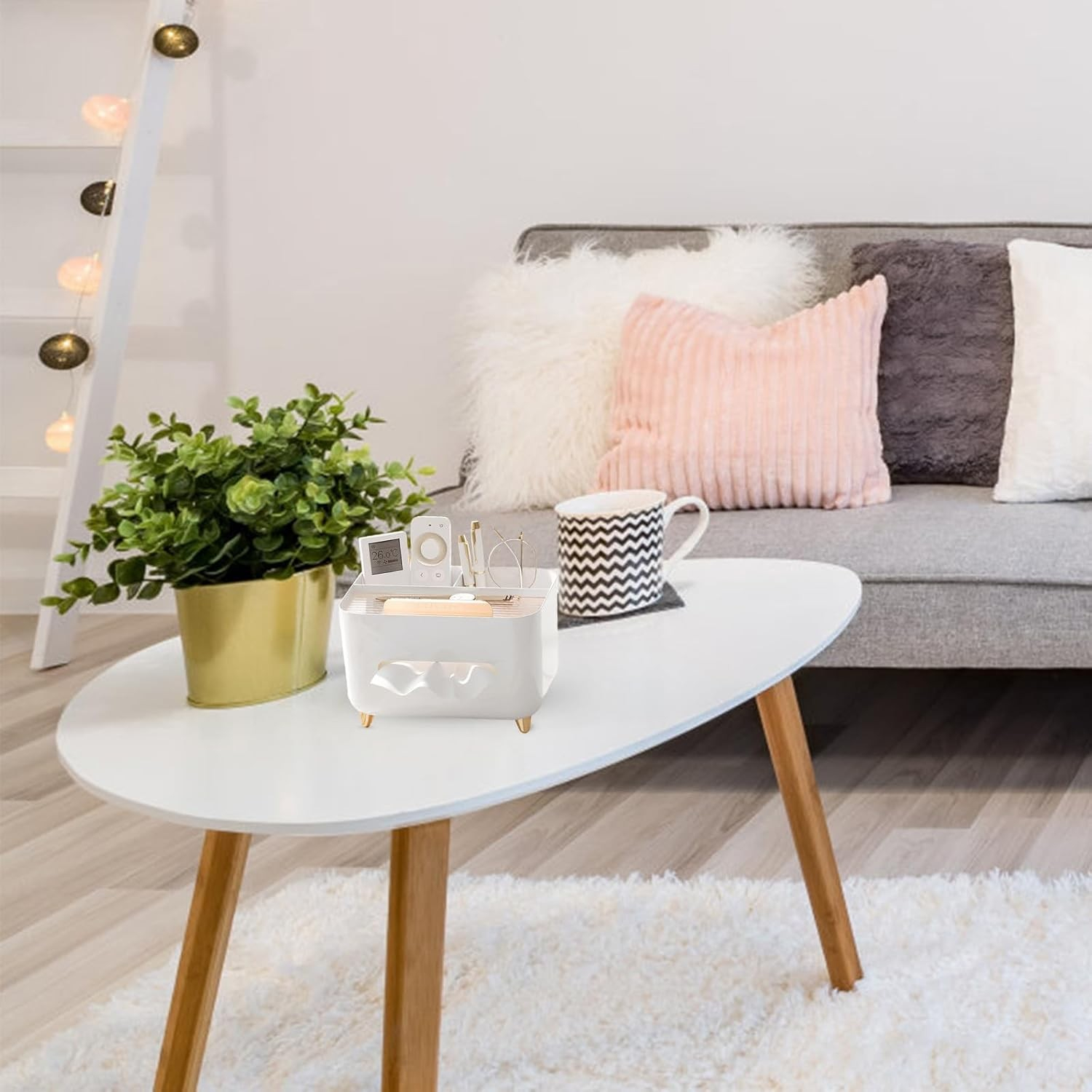 • Design Minimalist: Forma simplă, curată și modernă a suportului îi permite să se integreze perfect în orice decor, fie că este vorba de o masă de dining, un birou sau o zonă de relaxare. Culorile neutre completează estetica sofisticată, făcându-l un accesoriu versatil.