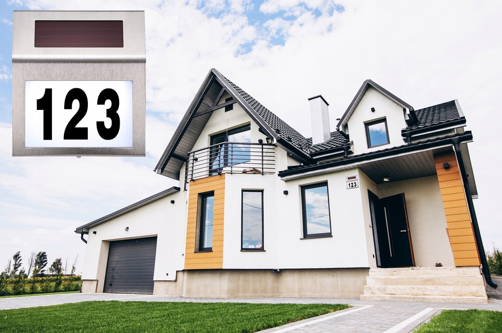 Lampa solara LED afisare numar de casa, inox, kit montare inclus, 20x18x3 cm