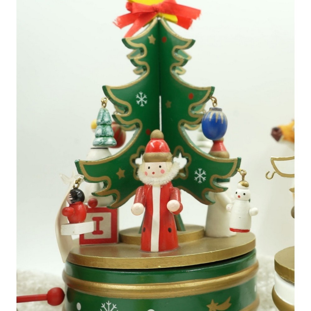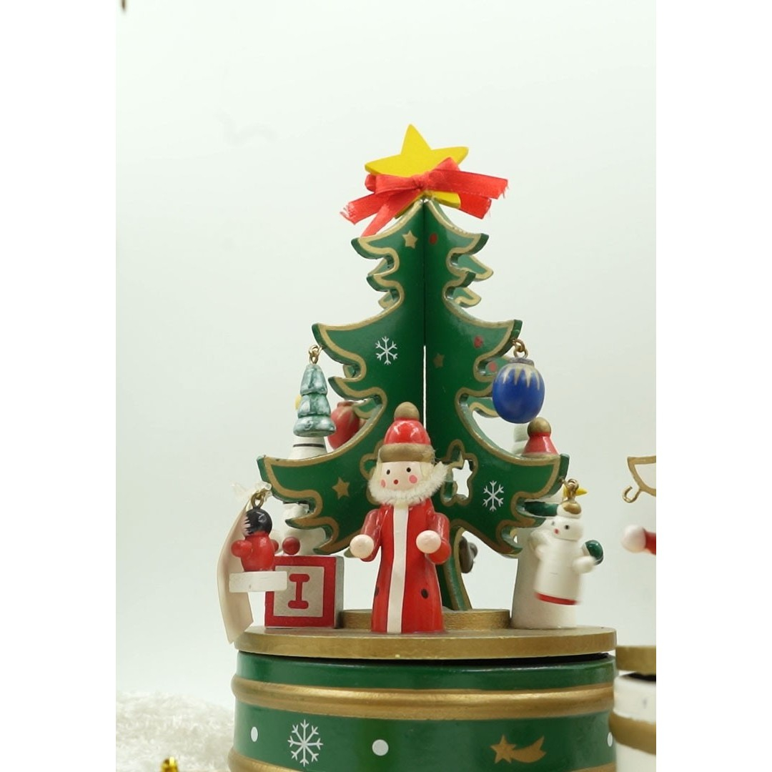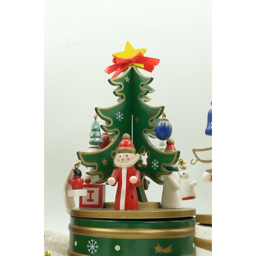 Cutiuta muzicala decorata de Craciun Bradut, Verde, din Lemn, 12 cm x 22 cm, Interior,