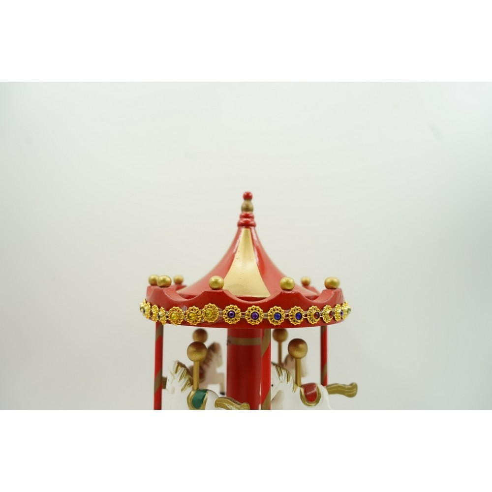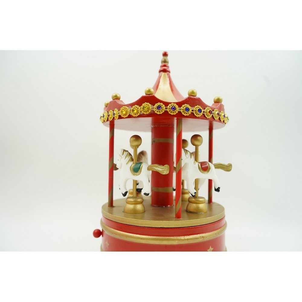 Cutiuta muzicala decorata de Craciun, Carusel rotativ, Rosu, din Lemn, Interior,