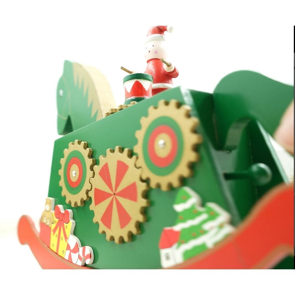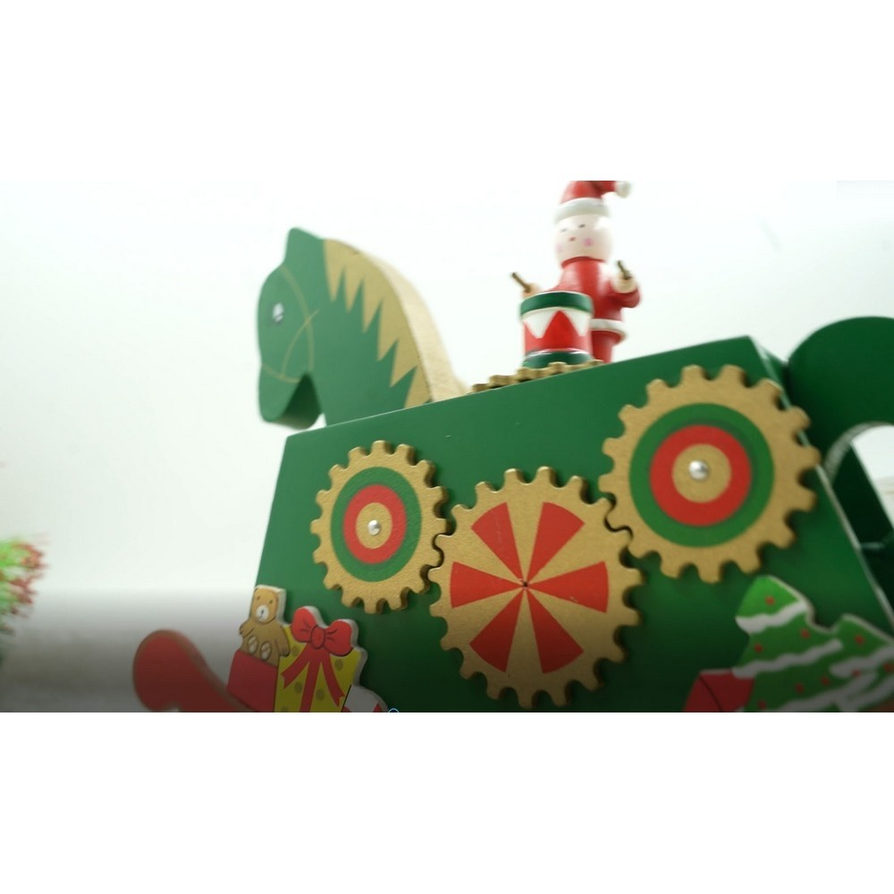 Cutiuta muzicala decorata de Craciun, Ponei, Verde, din Lemn, 18 cm x 25 cm, Interior,