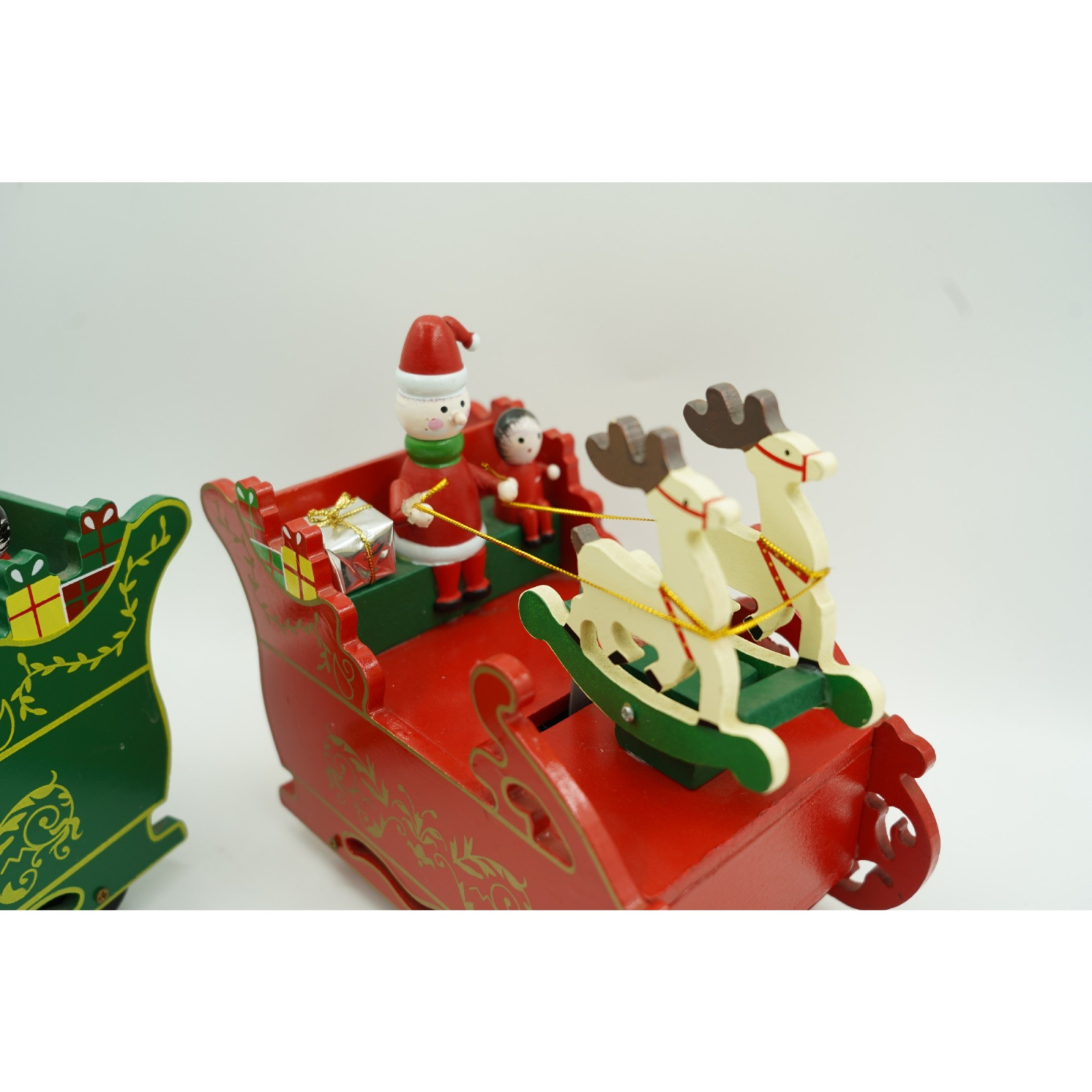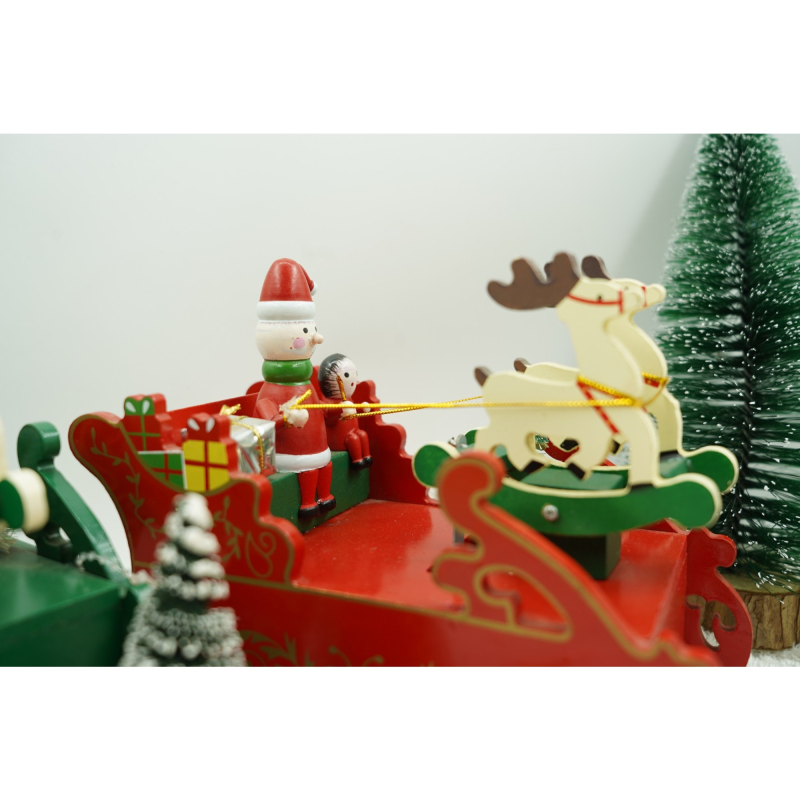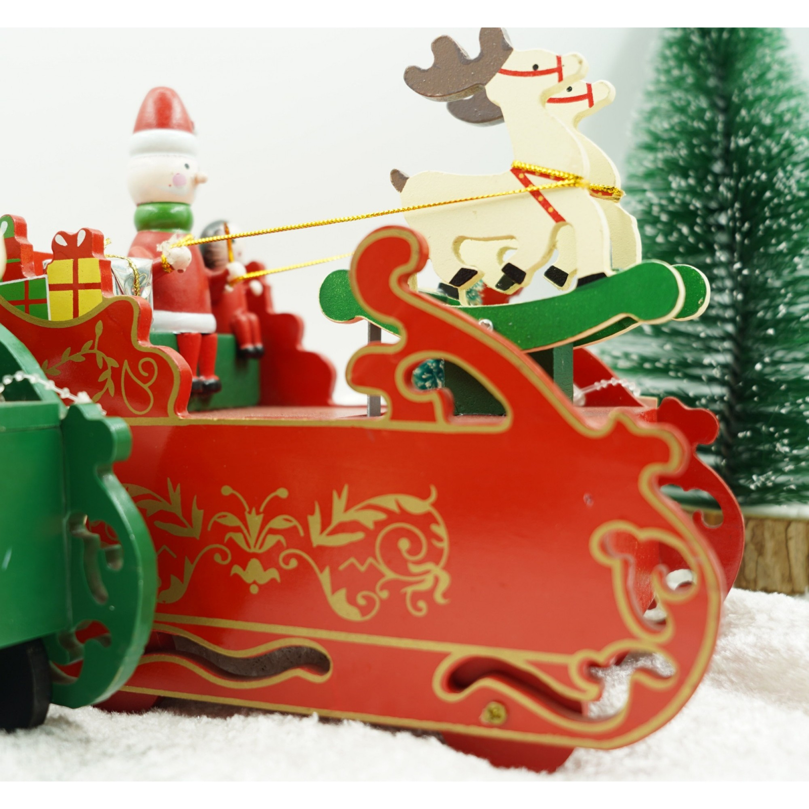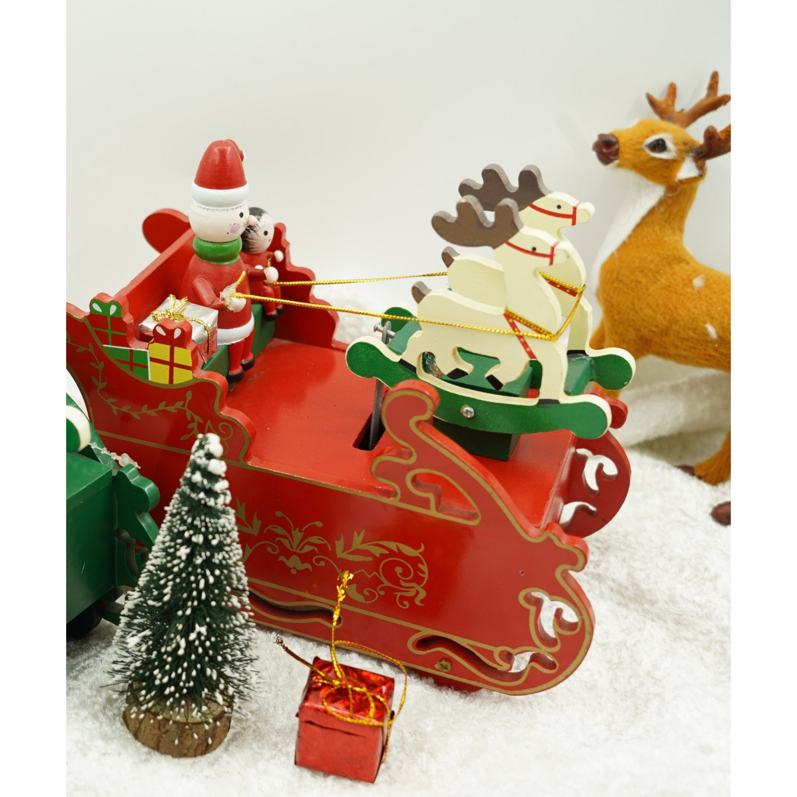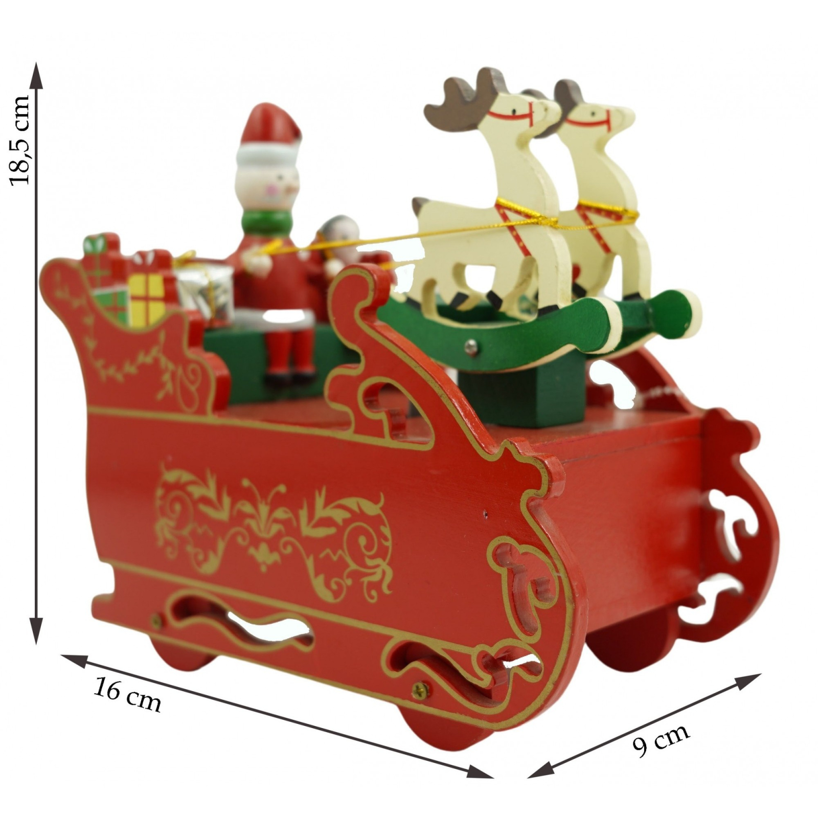 Cutiuta muzicala decorata, Sania lui Mos Craciun, Rosu, din Lemn, 16 cm x 18.5 cm, Interior,