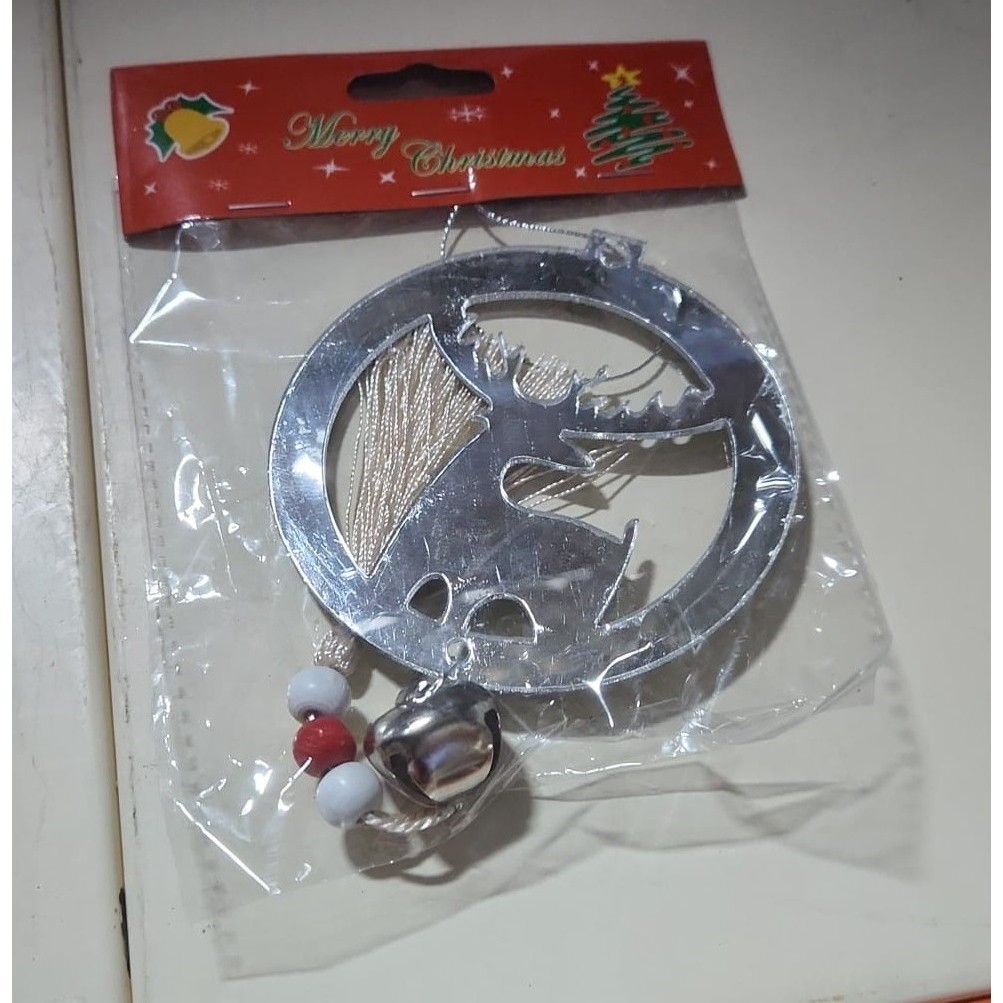 Decorațiune de Crăciun , pentru Brad, Model Ren cu Clopoțel, Lucios, Argintiu