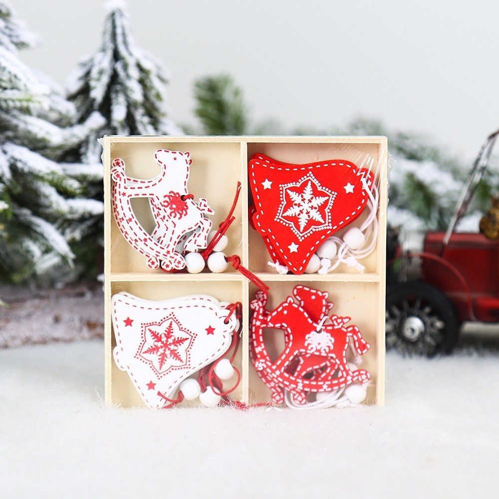 Set 12 Decorațiuni de Crăciun din Lemn cu Snur pentru Agatare în Brad - Model Caluti si Clopotei