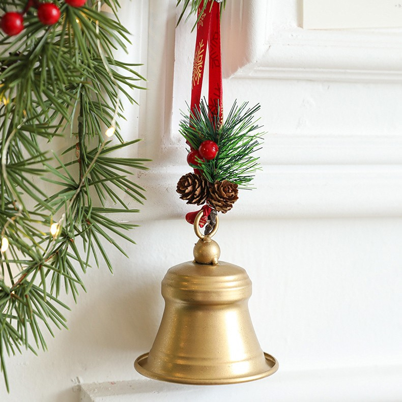 Adauga un strop de magie sarbatorilor cu acest Clopot decorativ , ideal pentru a infrumuseta bradul de Craciun sau pentru a completa decorul festiv din locuinta ta. Realizat din metal rezistent, clopotul impresioneaza prin finisajul auriu elegant, completat de o funda rosie cu motive de iarna si o crenguta de brad artificial cu conuri si fructe rosii decorative.