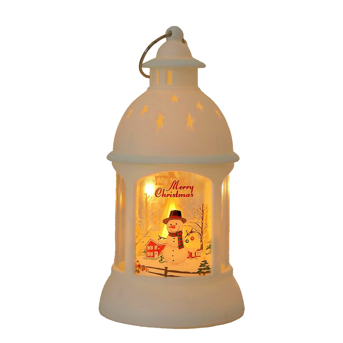 Decorațiune de Crăciun, , Model Sfeșnic de Birou, Om de Zăpadă, cu Inel de Agățat, din Plastic, 6.8 x 13.5 x 2 cm, Alb