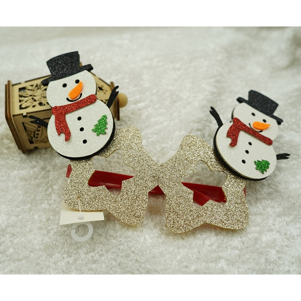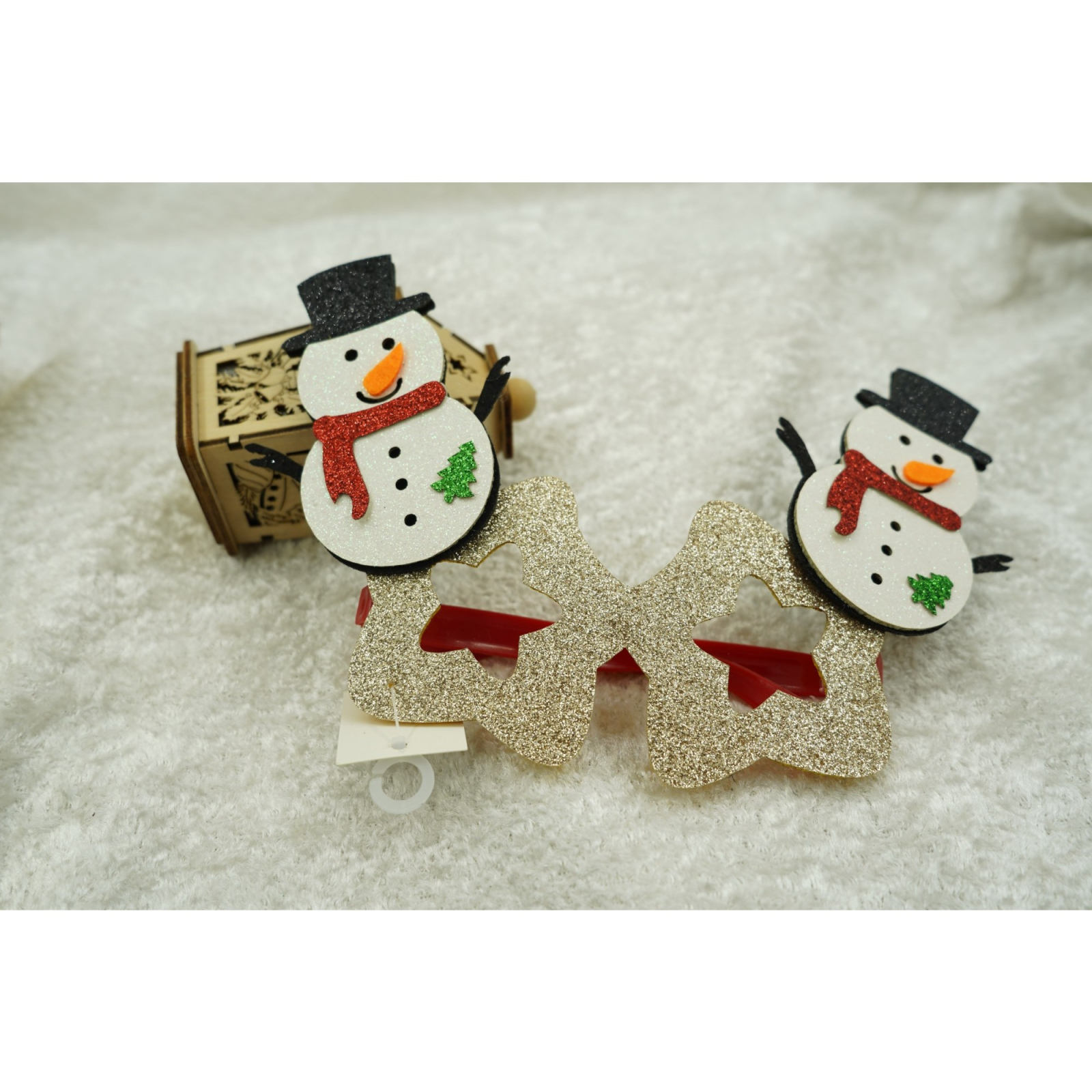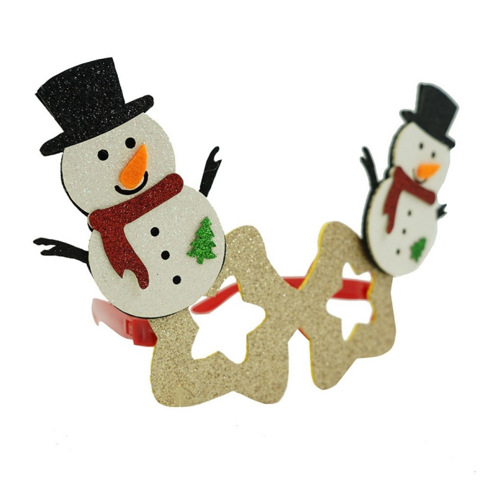 Ochelari petrecere de Craciun, forma de Stea cu Om de Zapada, Bej, din Plastic si Poliester,