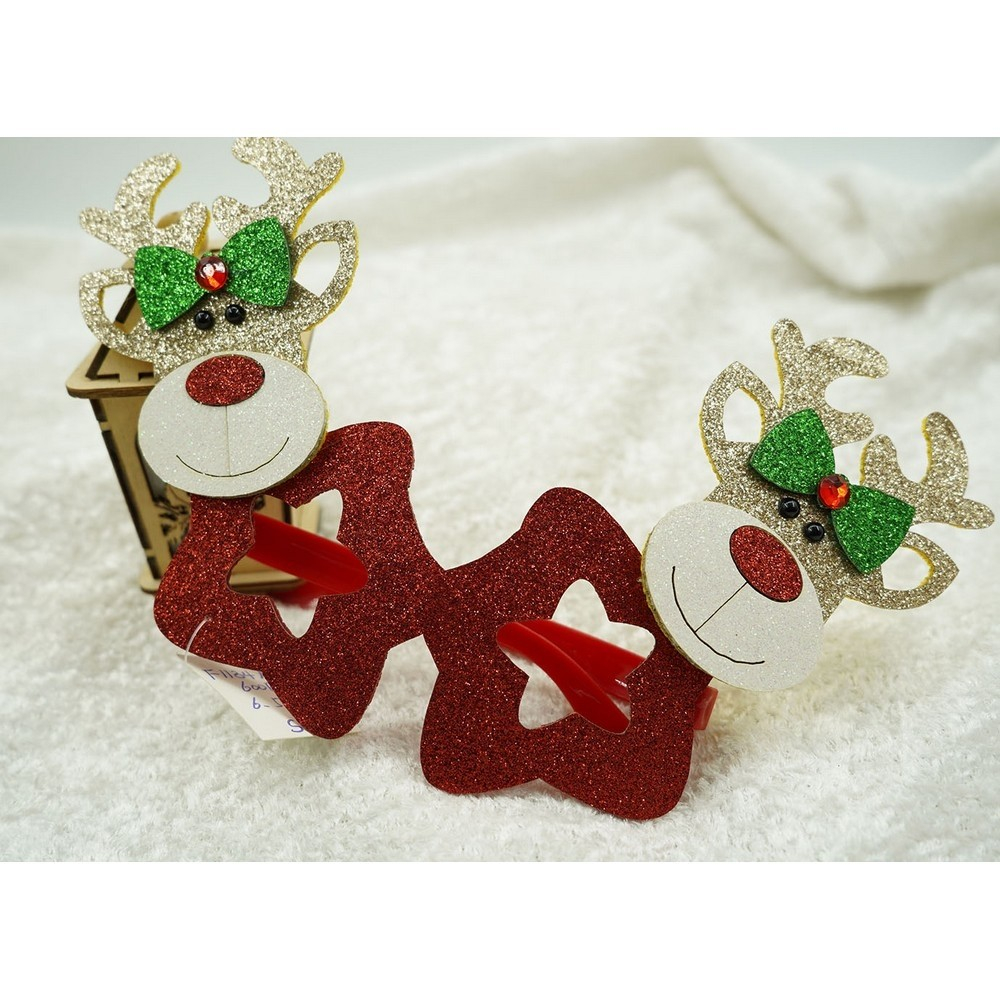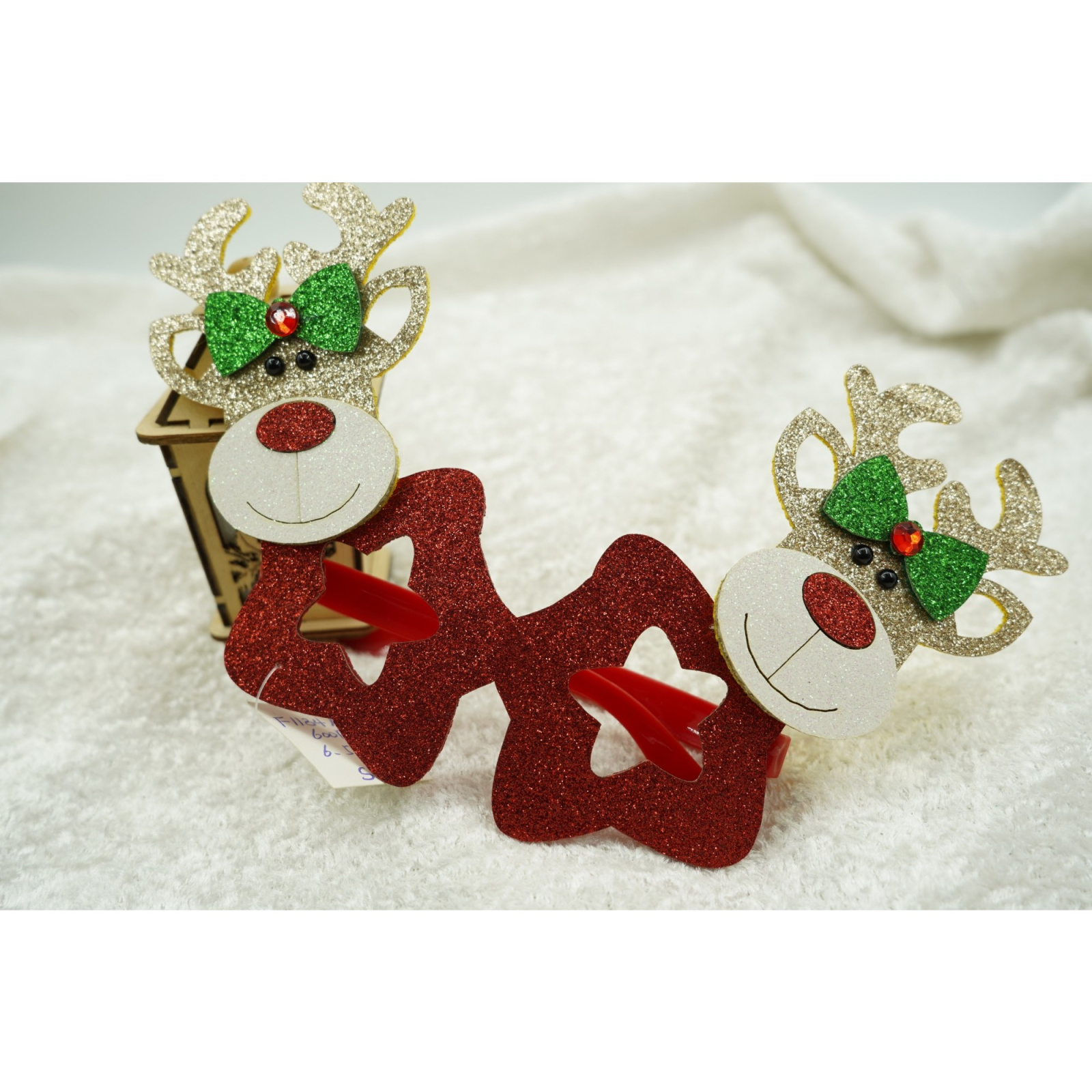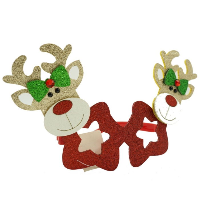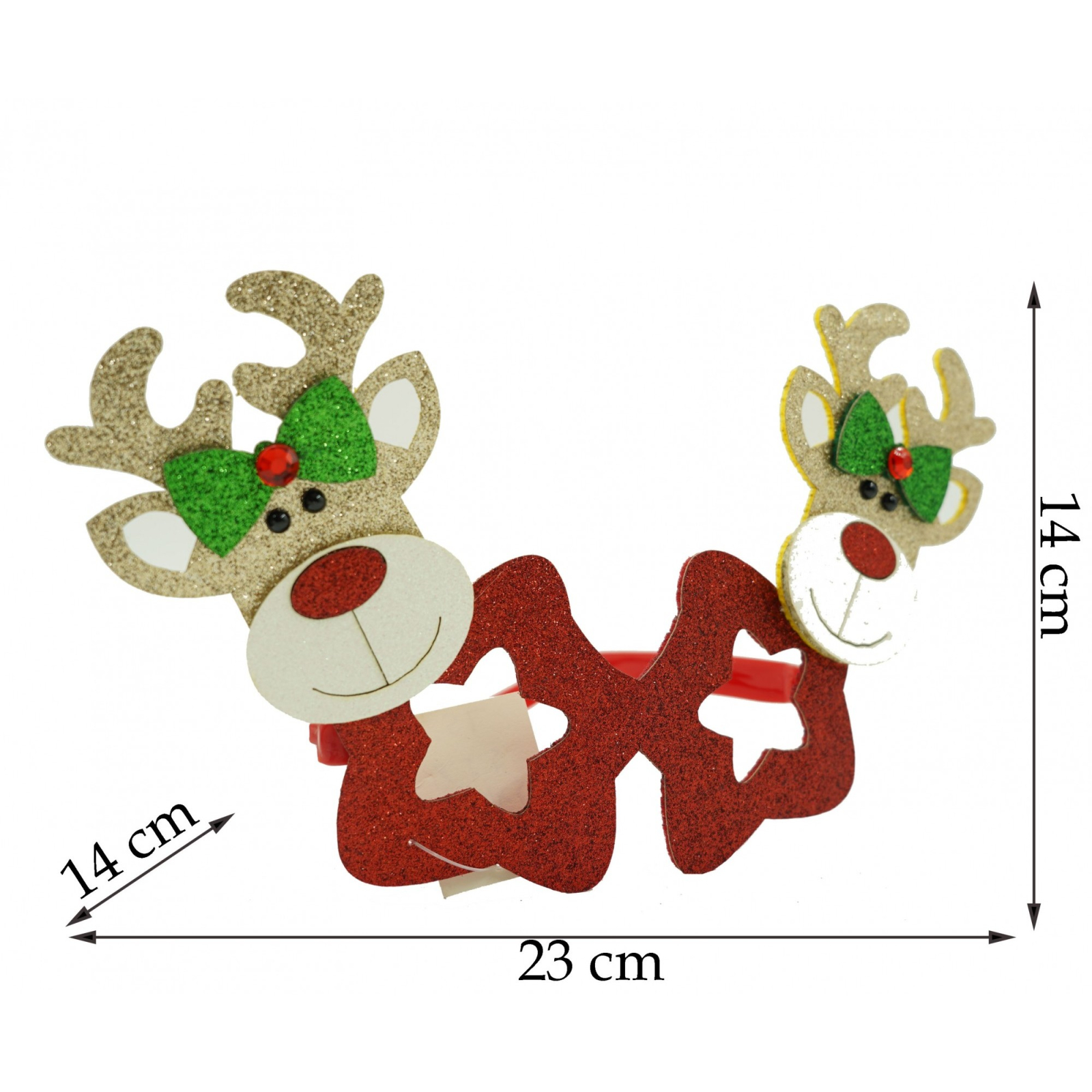 Ochelari petrecere de Craciun, forma Stea cu Ren , Rosu, din Plastic si Poliester,