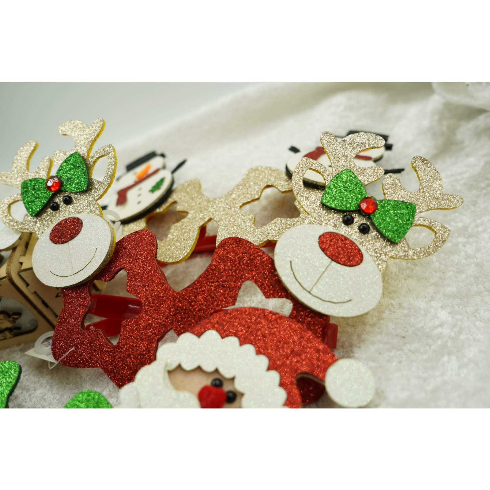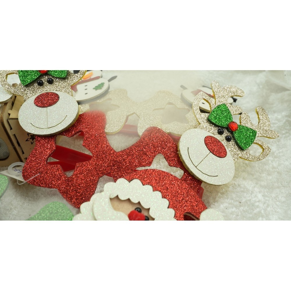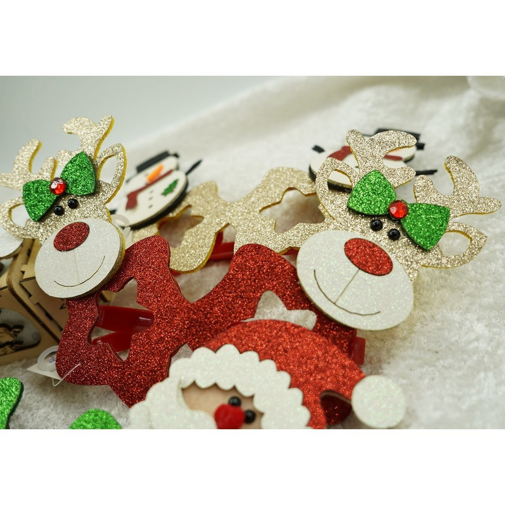 Ochelari petrecere de Craciun, forma Stea cu Ren , Rosu, din Plastic si Poliester,