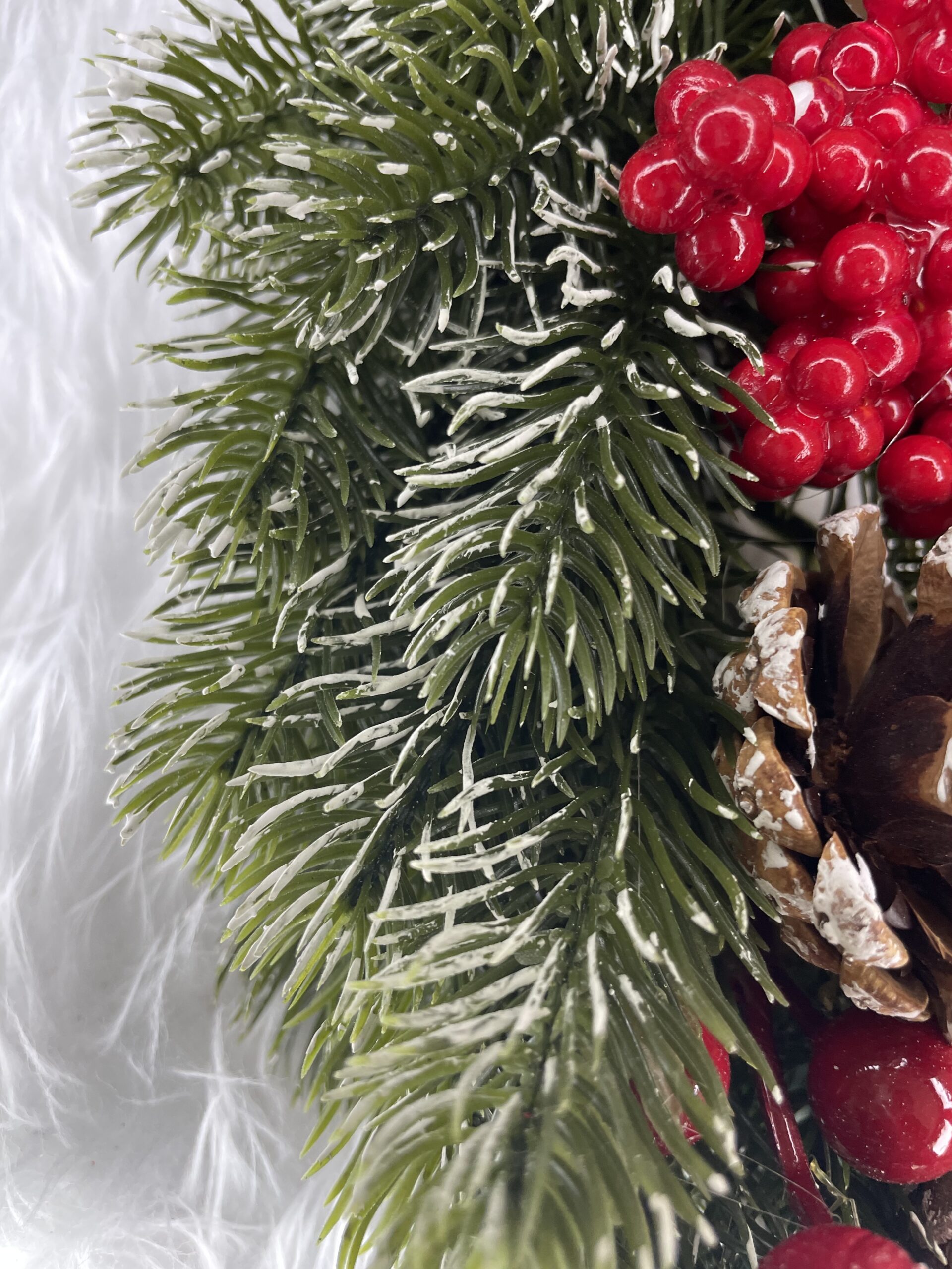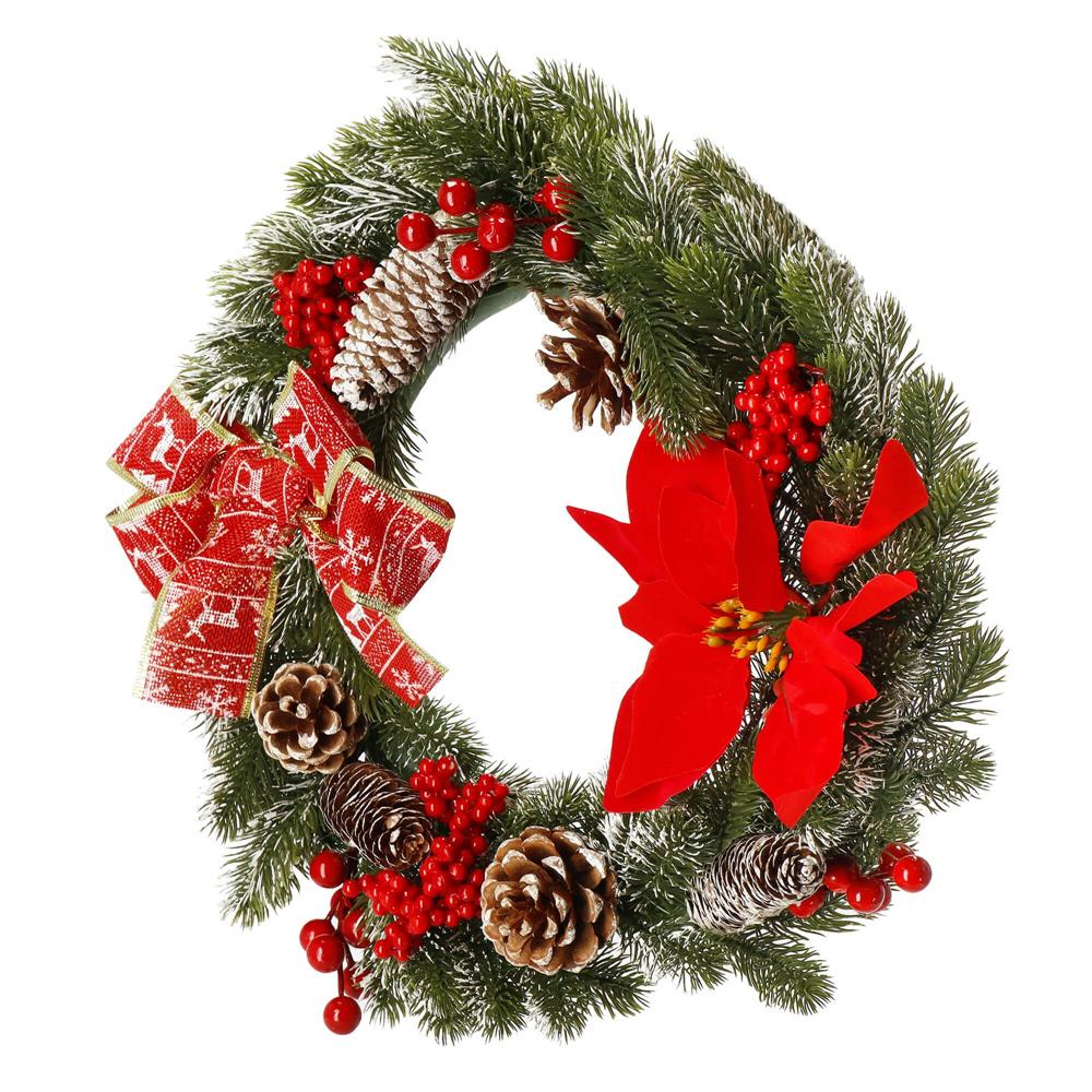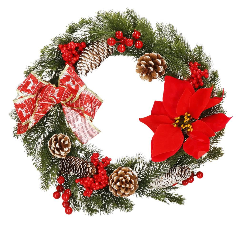Coronita pentru Craciun, 40 cm, din brad artificial 3D, cu conuri si zapada, verde