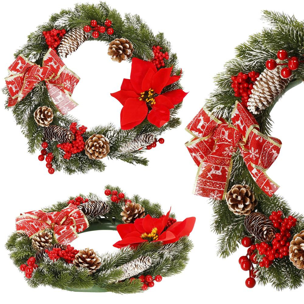 CORONITA DECORATIVA DE CRACIUN PENTRU USA SAU PERETE Culoare: verde, rosu, auriu Latime: aprox. 10-11 cm Diametrul coroanei: aproximativ 40 cm. Diametrul interior: aprox....