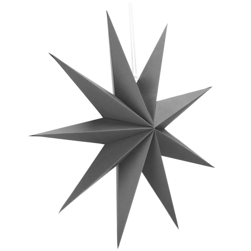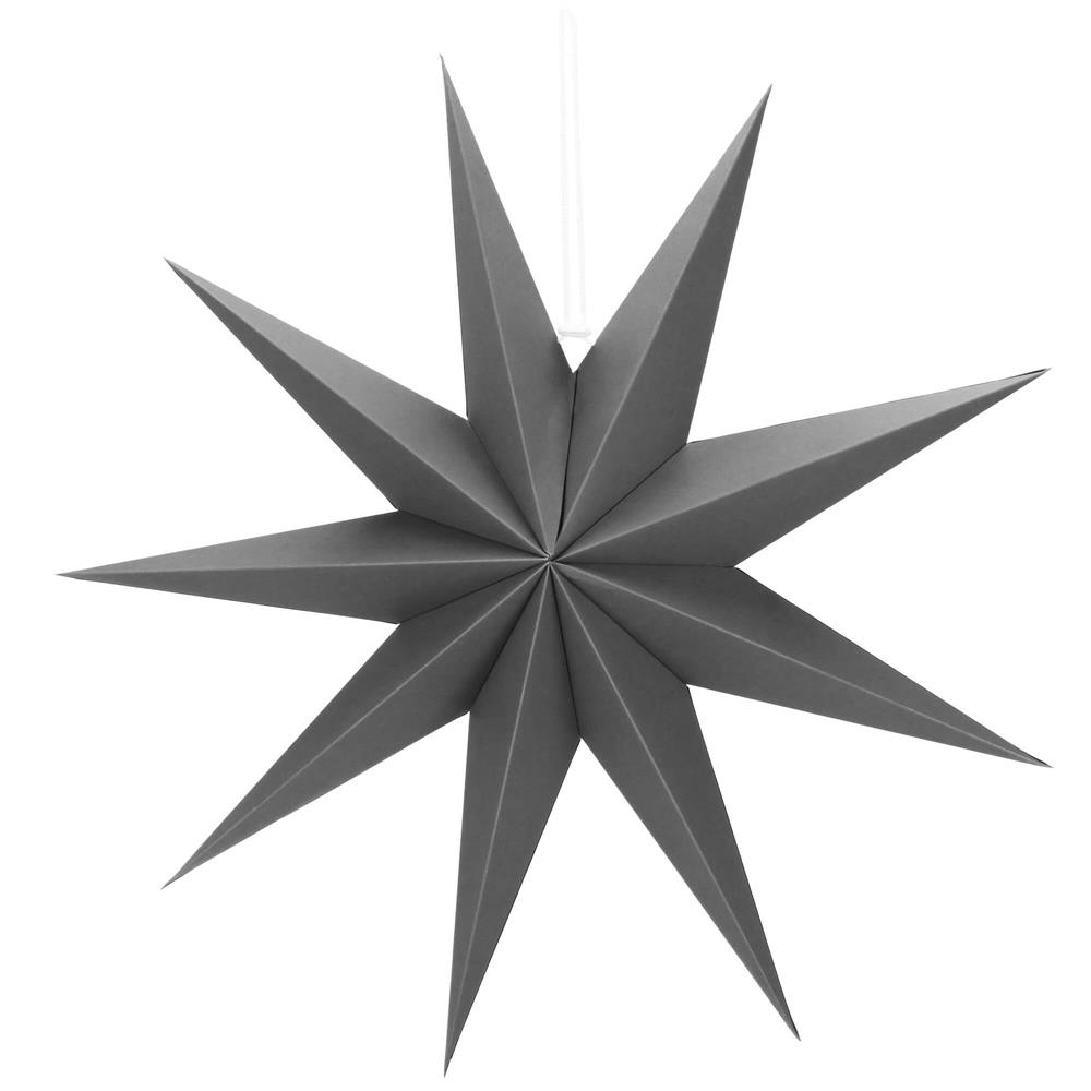 Stea decorativa 3D din hartie, cu 9 colturi, 60cm, argintie