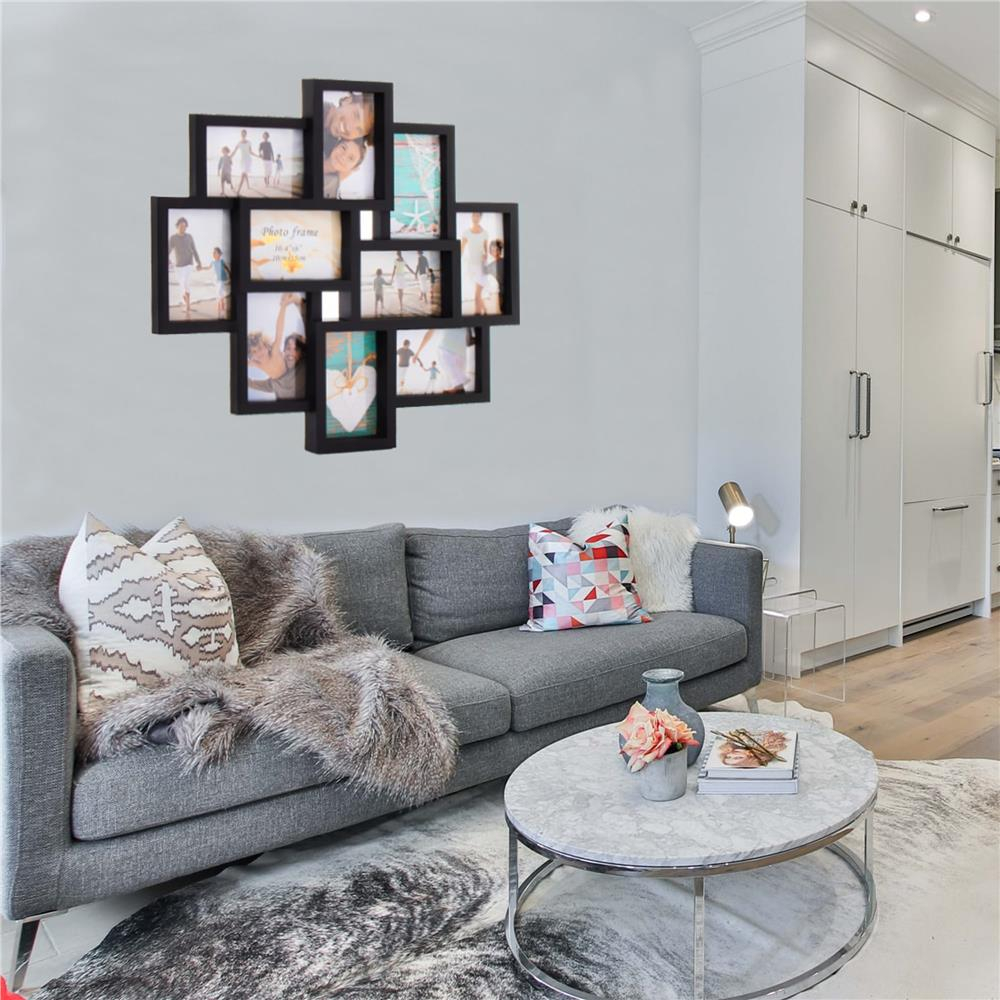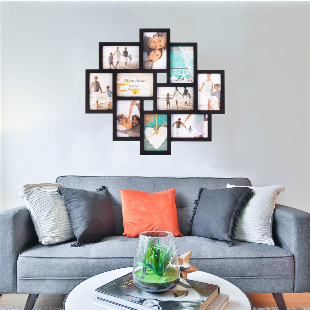 Rama foto de perete, colaj de 10 fotografii, 48x53cm, negru