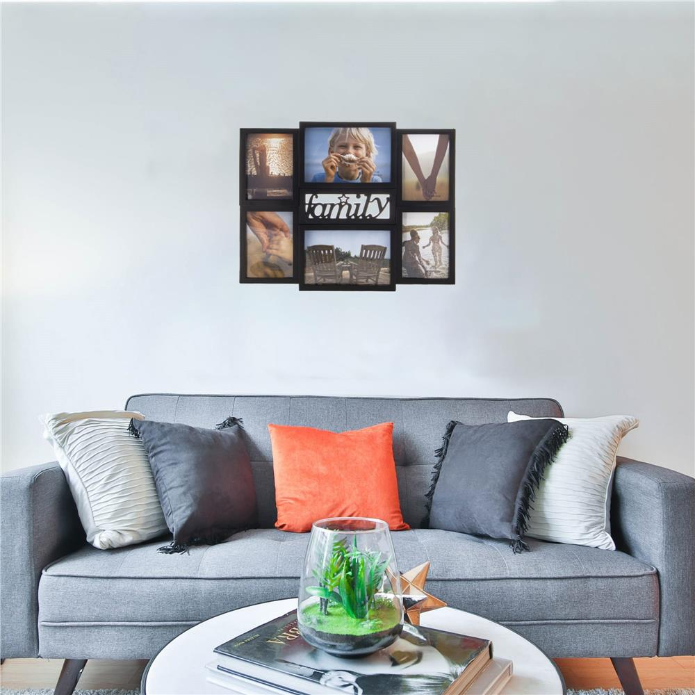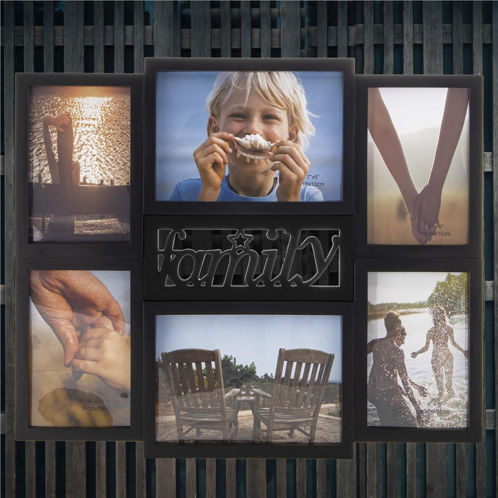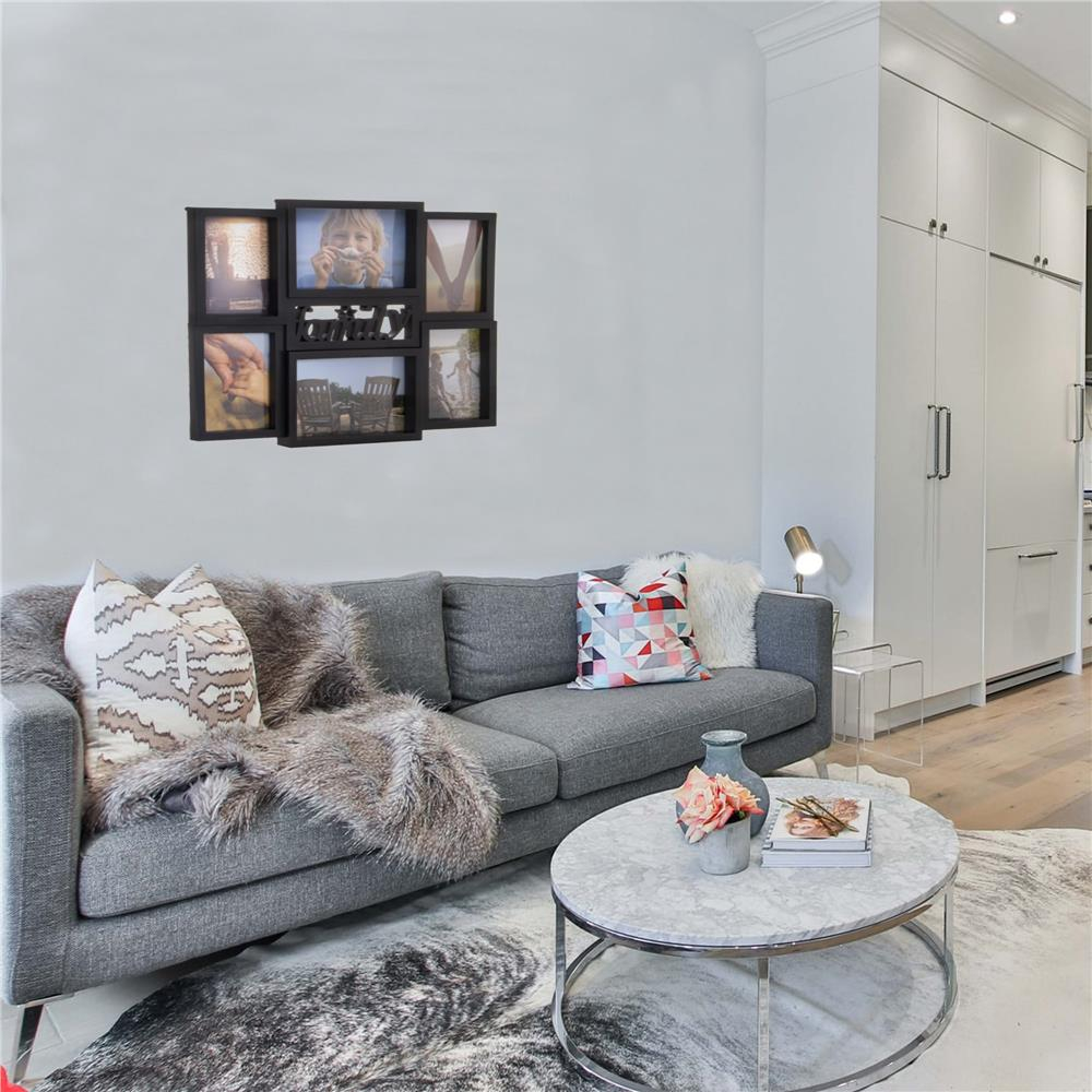 Rama foto de perete, colaj de 6 fotografii, 36x42cm, negru