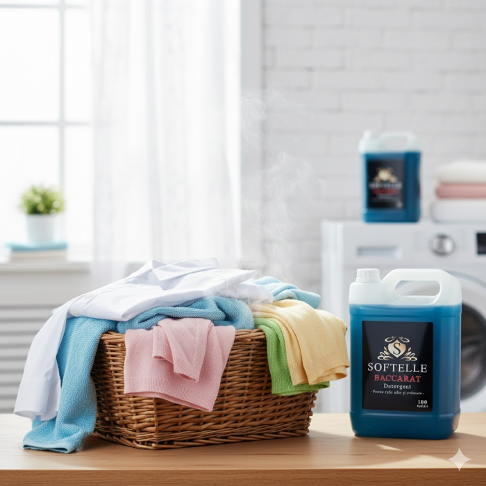 detergent Softelle, balsam Softelle, detergent lichid 5L, balsam 5L, detergent Fresh, detergent Baccarat, balsam Spring, balsam incapsulat, detergent si balsam rufe, detergent profesional, balsam concentrat, parfum persistent, curatare eficienta, haine moi si parfumate