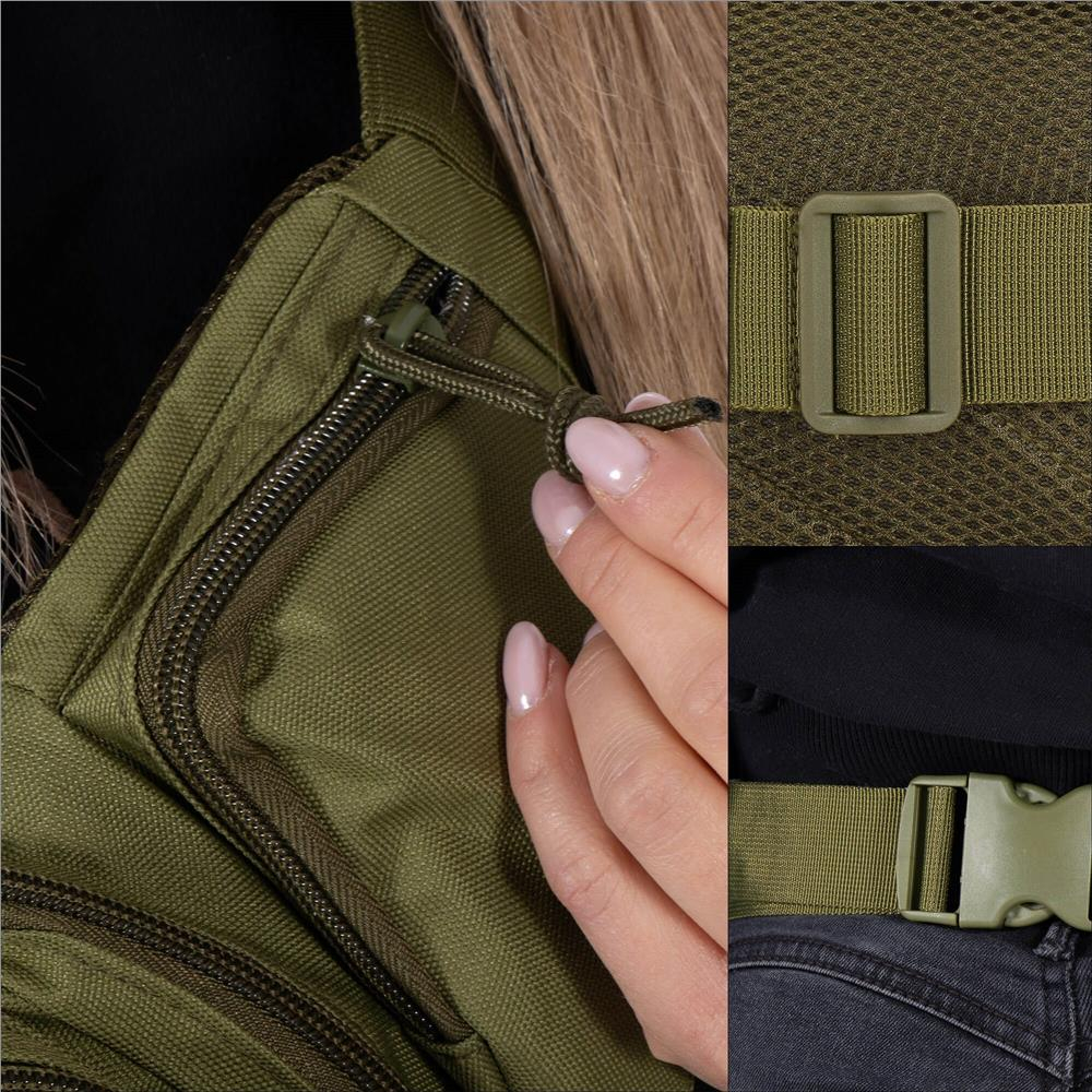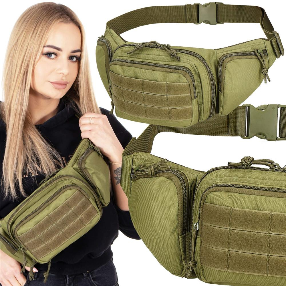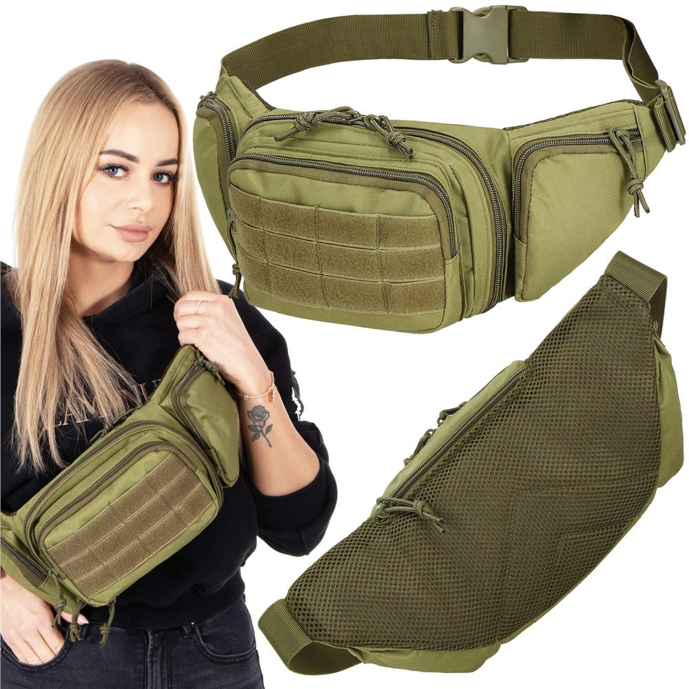 Material: poliester Culoare: verde militar Tip de inchidere: fermoar Tip de prindere: catarama cu snap pe o curea reglabila Numar de buzunare: 5 Numar de...
