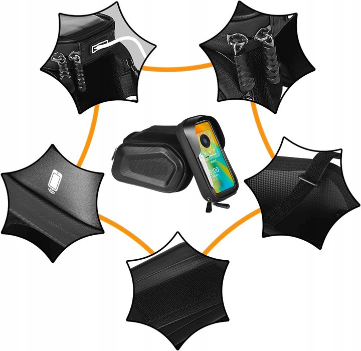 Dimensiuni exterioare: 20x17x15cm Materiale: PU+EVC+TPU+PET Geanta de bicicleta va permite sa va depozitati toate lucrurile esentiale intr-un singur loc! Dotata cu un buzunar special pentru smartphone, aceasta va contine obiecte importante, precum chei, documente si bani. Buzunarul transparent pentru telefon este ideal pentru navigatia pe drum! Curele Velcro pentru montare Carcasa rigida rezistenta la apa cu finisaj din folie de carbon Fereastra transparenta pentru plasarea telefonului sau a hartii (folia permite operarea dispozitivelor cu ecran tactil) Daca ati visat sa calatoriti intr-un loc in care nu ati mai fost niciodata, dar ati avut intotdeauna ingrijorari legate de faptul ca nu puteti folosi navigatia – asta face parte din trecut! Panoul transparent din geamantan va garanteaza utilizarea completa a telefonului in timp ce conduceti. Astfel, puteti porni la drum cu navigatia in functiune sau puteti schimba muzica din aplicatie – utilizarile sunt numeroase!