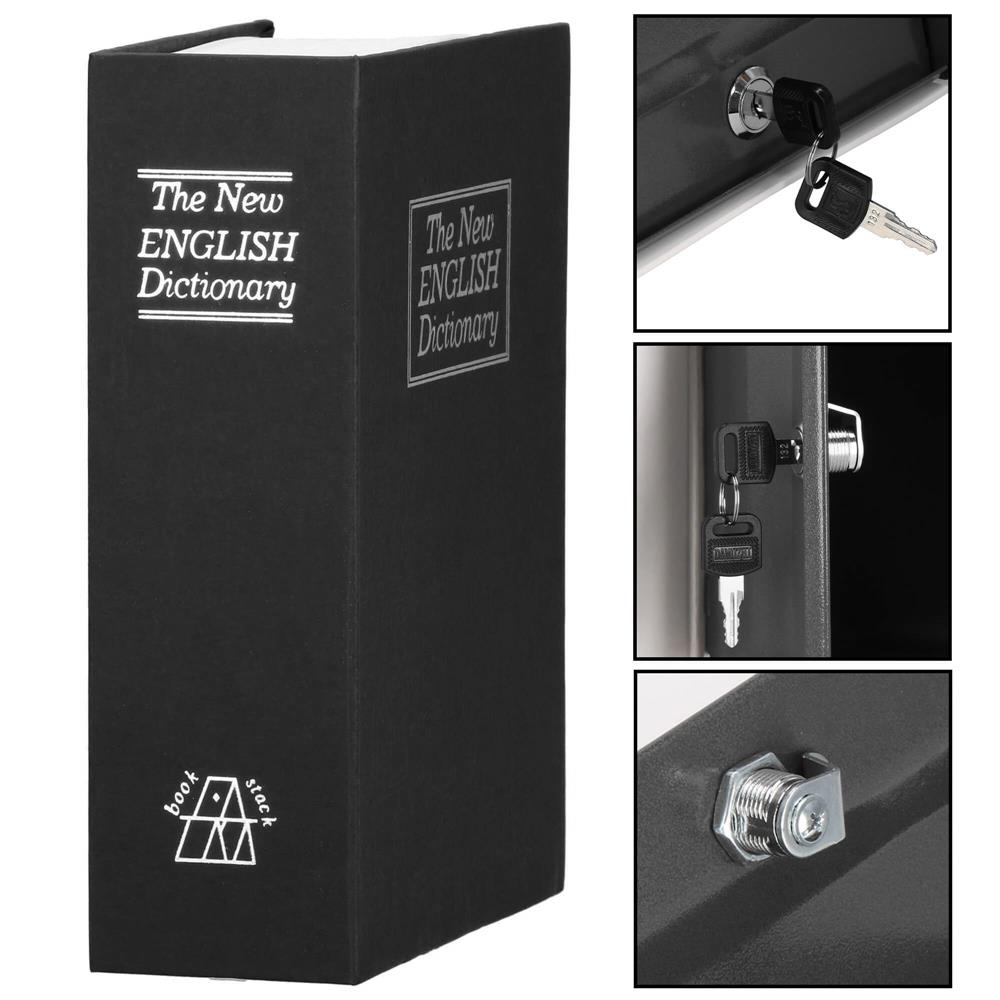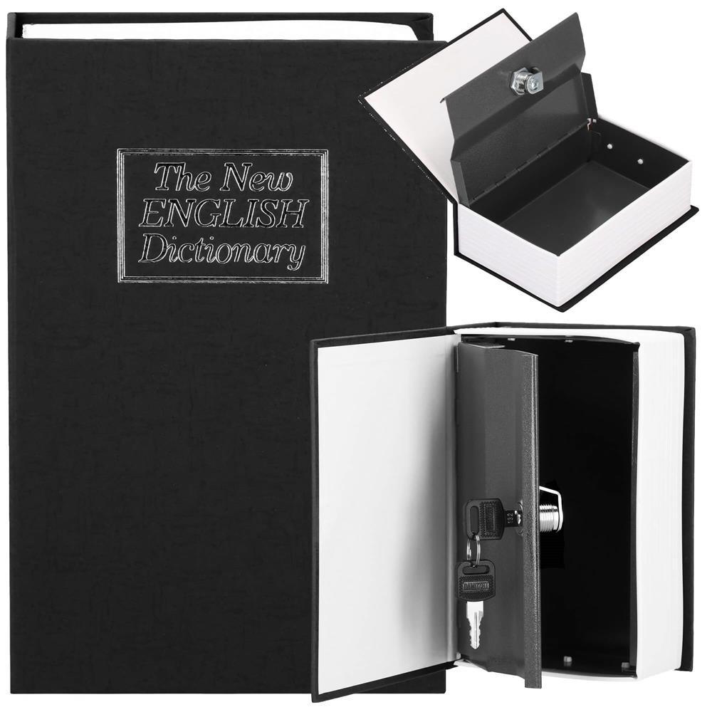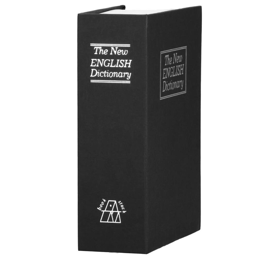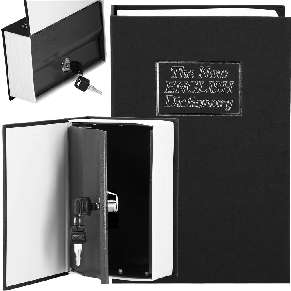 Caseta de valori, cutie metalica cu cheie, portabila, tip carte, Dictionar, negru, 24x15.5x5.5 cm