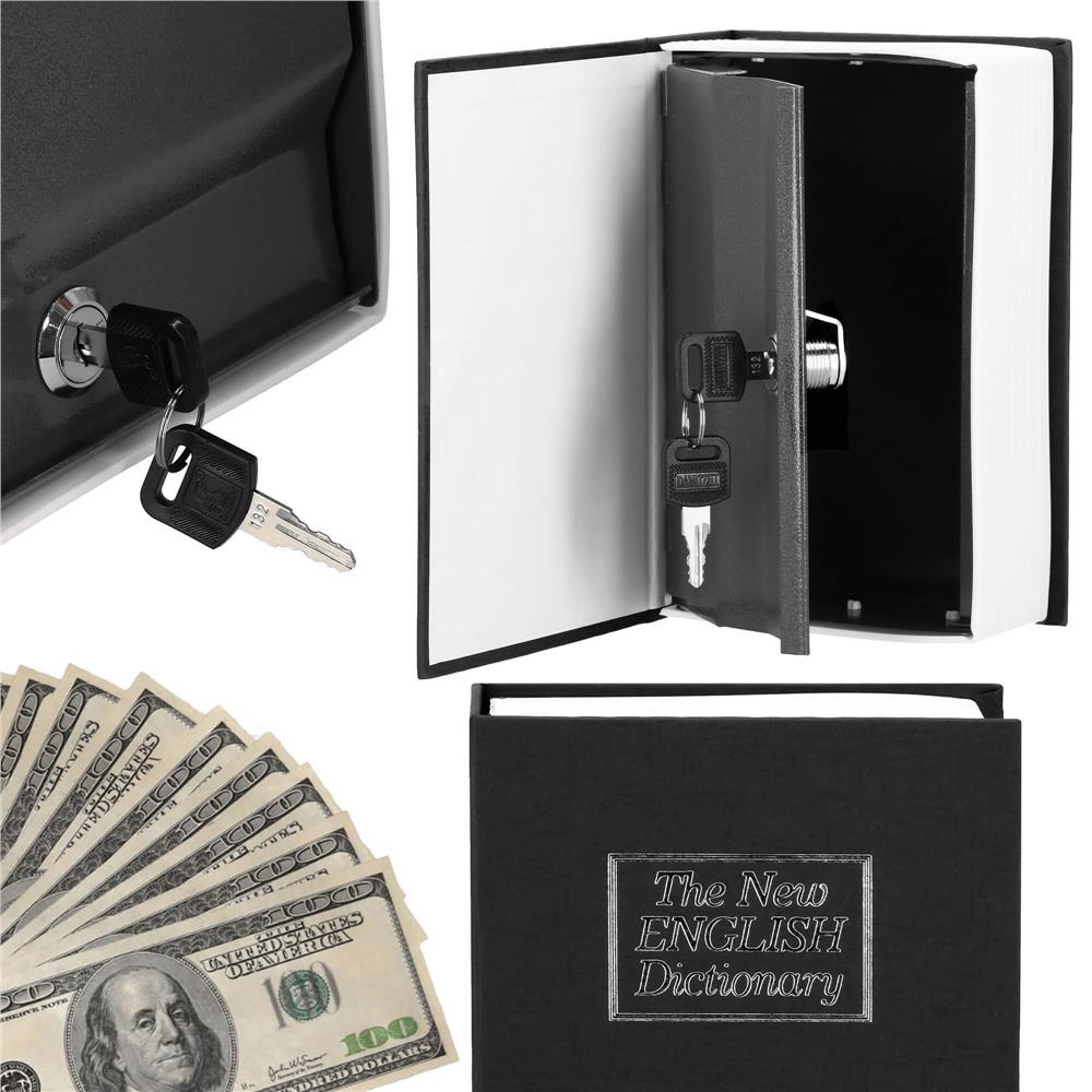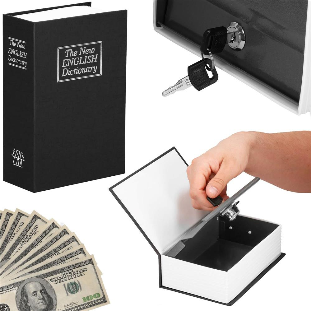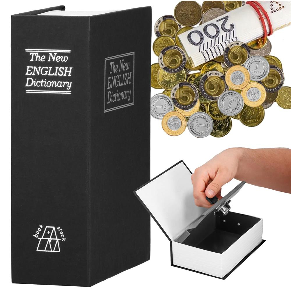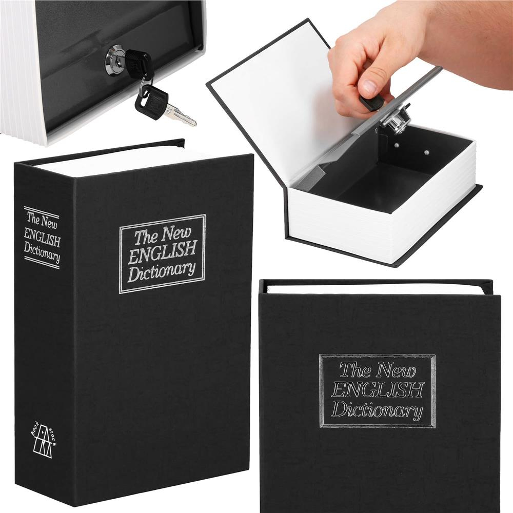 Caseta de valori, cutie metalica cu cheie, portabila, tip carte, Dictionar, negru, 24x15.5x5.5 cm