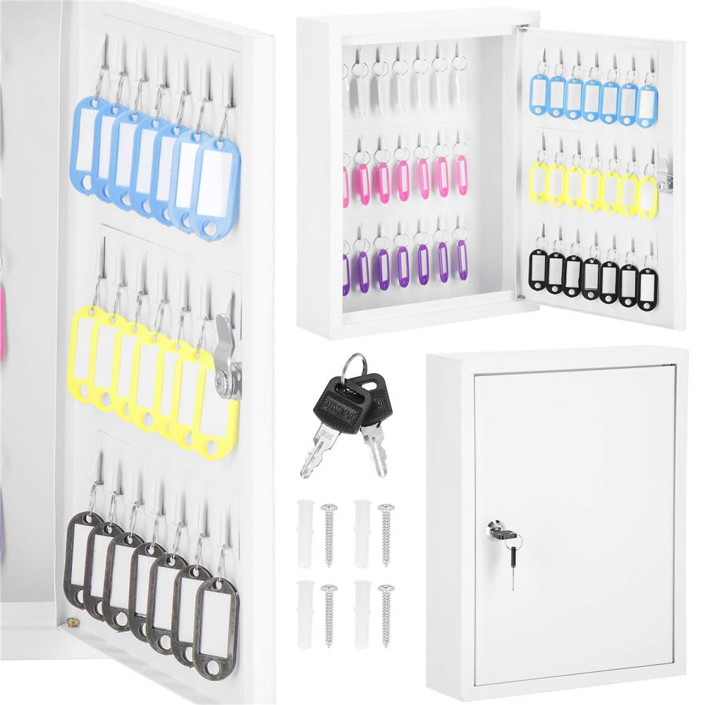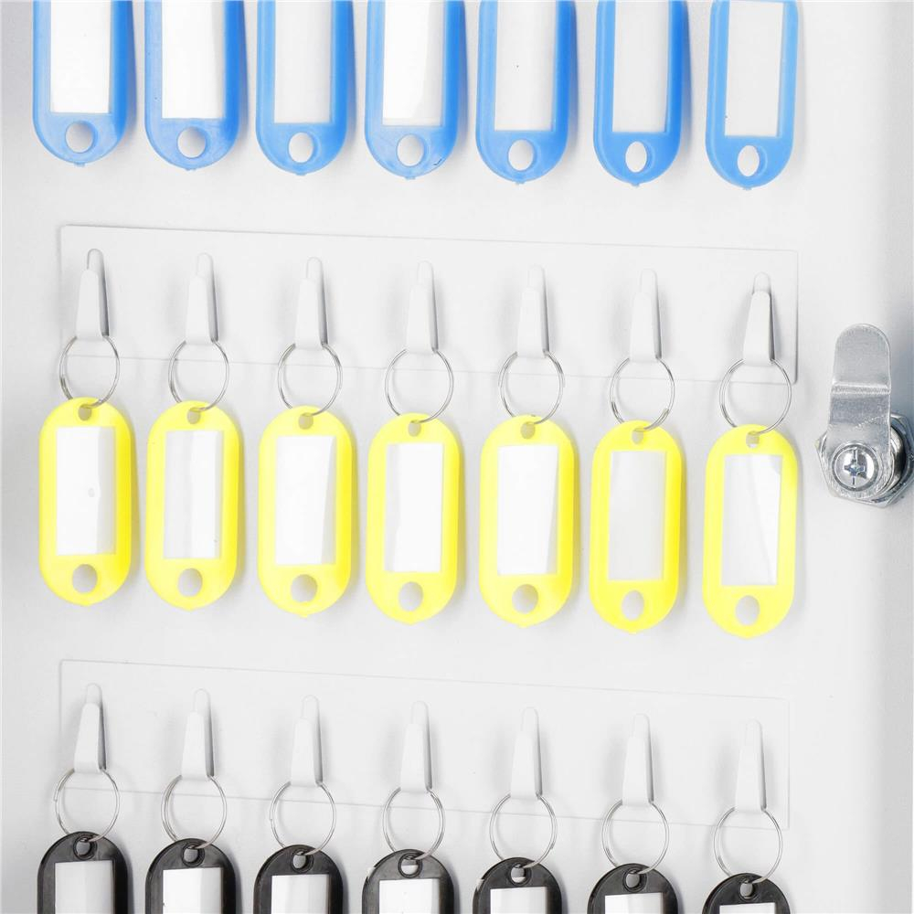 PARAMETRI: Material: Otel Culoarea carcasei: alb Culoare breloc: multicolor (mix) Finisaj: mat Inchidere cu cheie: da Numarul de carlige pentru chei: 42 Poate fi atarnat...
