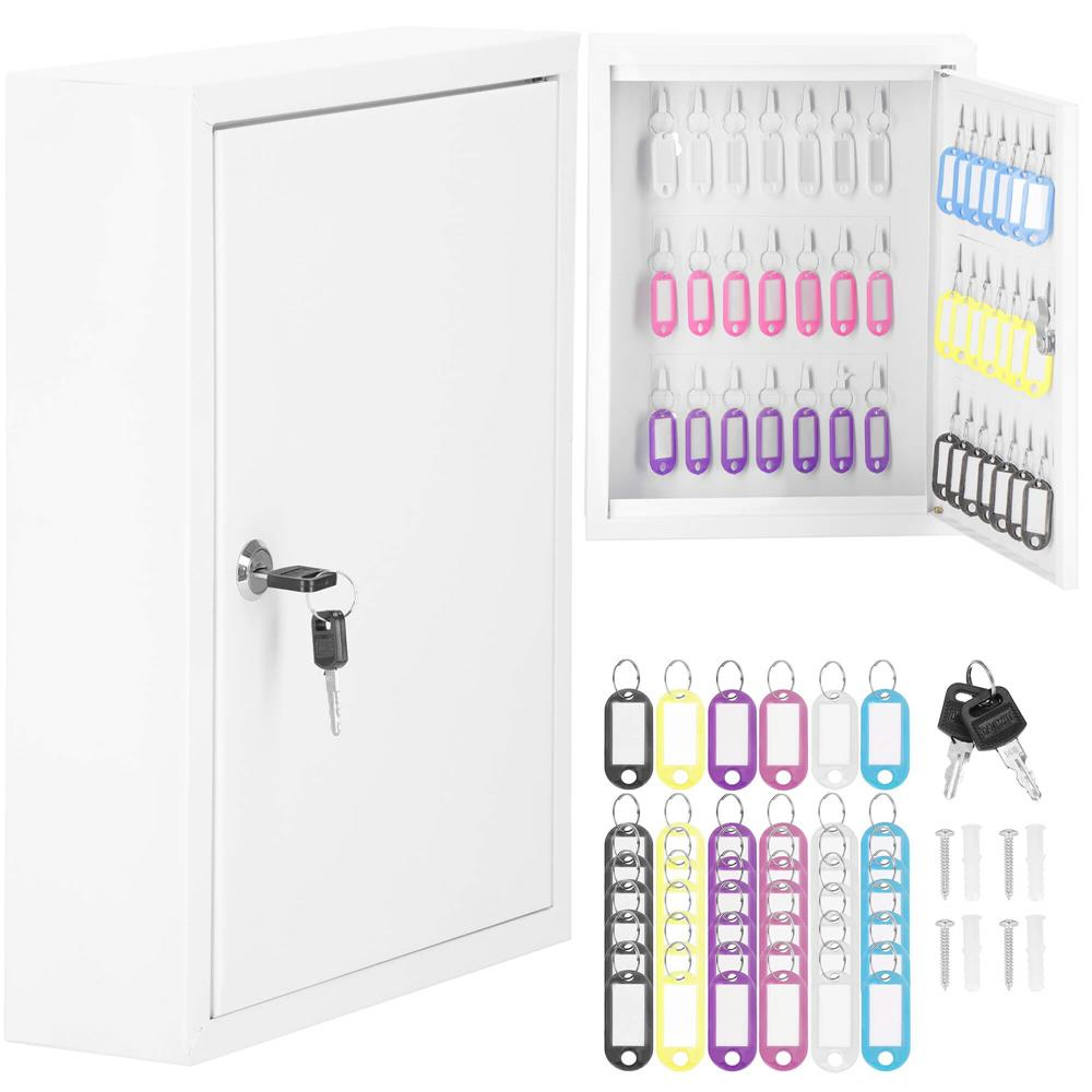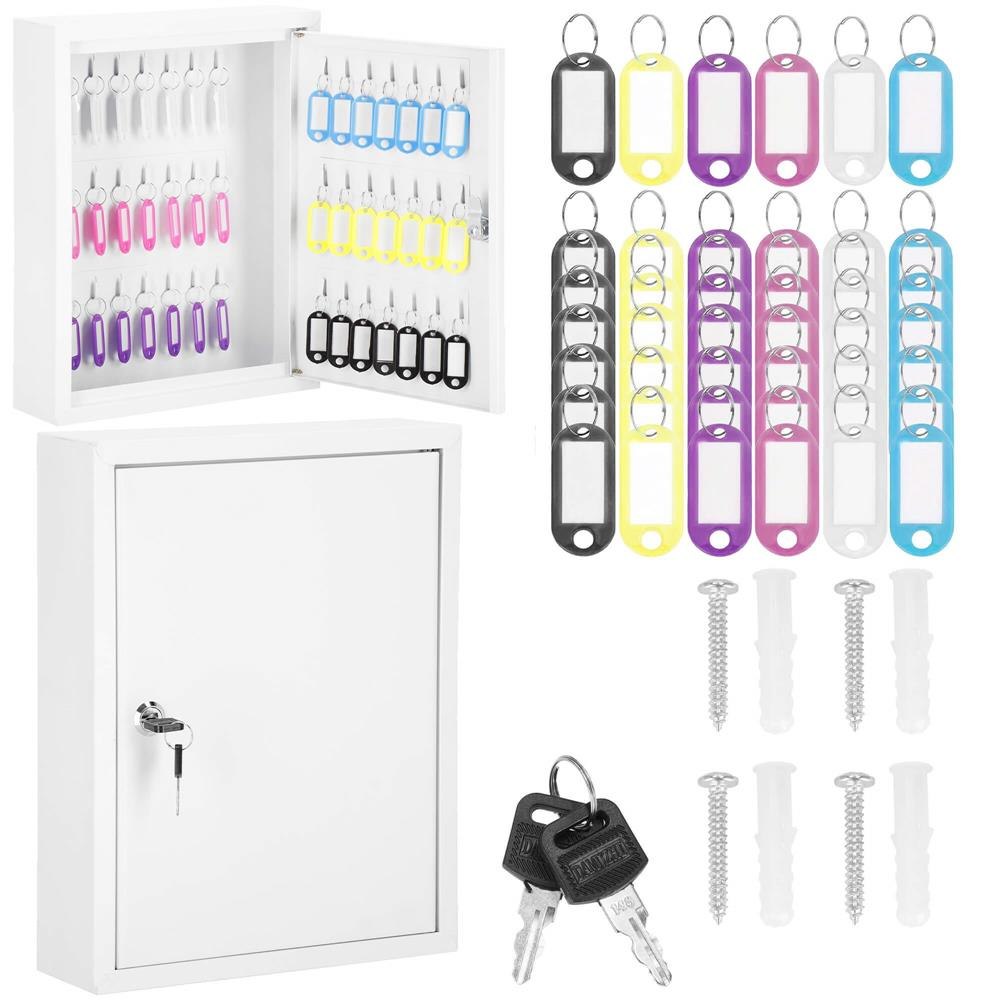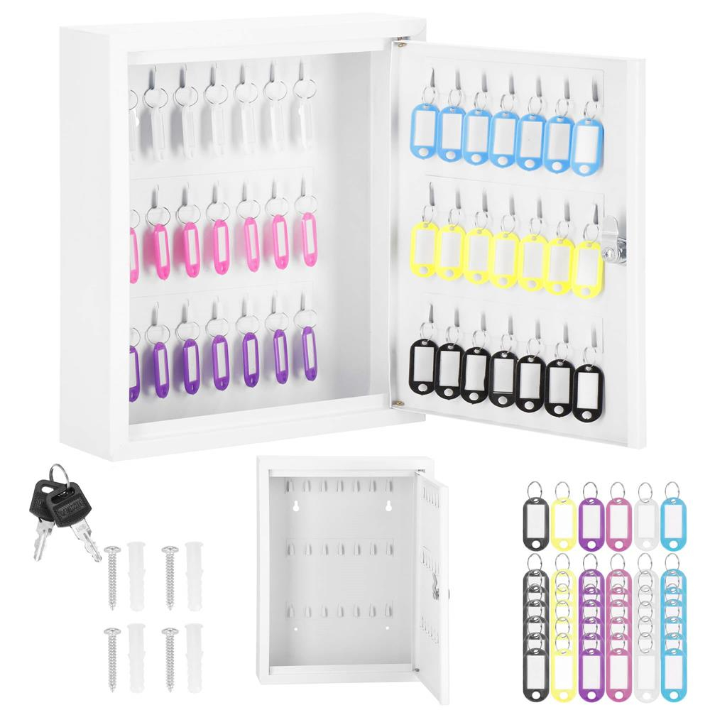 PARAMETRI: Material: Otel Culoarea carcasei: alb Culoare breloc: multicolor (mix) Finisaj: mat Inchidere cu cheie: da Numarul de carlige pentru chei: 42 Poate fi atarnat pe perete: da Dimensiuni: Inaltime: 35 cm Latime: 27 m Adancime: 8 cm Peretii grosi ai casetei asigura o buna protectie a cheilor din interior. Cu produsul nostru, puteti fi siguri ca nu veti pierde niciodata niciuna dintre cheile dumneavoastra. Constructia solida a casetei garanteaza siguranta si discretie. Daca profitati de oferta noastra, nu veti primi doar o carcasa rezistenta si durabila, ci si un set de etichete pentru chei. Cu ajutorul acestora, veti mentine ordinea si organizarea. Pentru a evita ca dulapul sa se piarda sau sa fie furat din greseala, montati-l pe perete! Dulapul are gauri pre-gaurite si veti primi in plus dibluri cu suruburi de la noi in kit. Produsul are culori discrete si universale, chiar si plasat pe perete nu va fi vizibil. Cutia de chei este un instrument extrem de util in multe medii. Suporturile pentru chei incluse faciliteaza pastrarea in ordine a cheilor depozitate. Incuietoarea cu cheie protejeaza continutul Fabricat din materiale durabile si puternice Inclus: elemente de montare / brelocuri de chei Echipat cu 42 de carlige pentru chei Incuiat cu cheie de blocare Culori discrete Poate fi combinat cu alte accesorii Poate fi montat pe perete Interiorul are un separator mobil cu carlige pentru o capacitate de depozitare mai mare