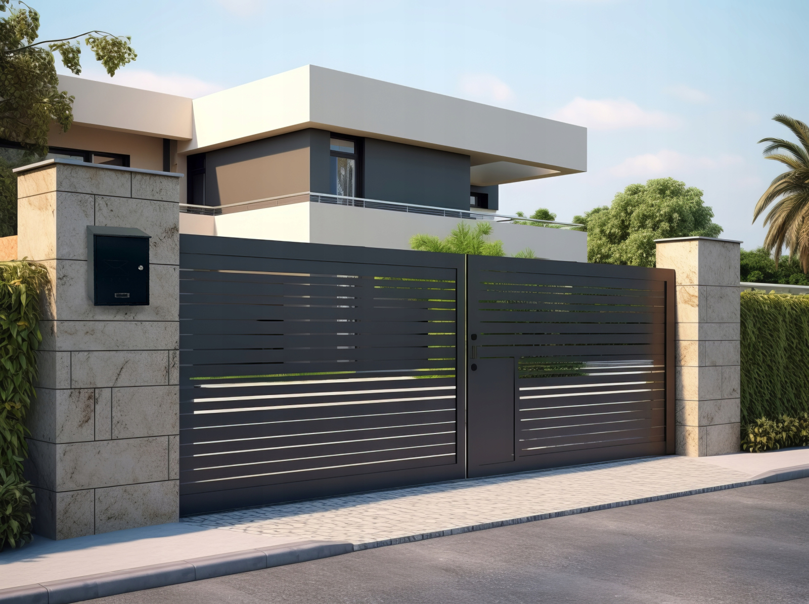 Cutie postala de exterior, pentru gard sau perete, din otel zincat, cu incuietoare, 38x10x25cm, gri inchis