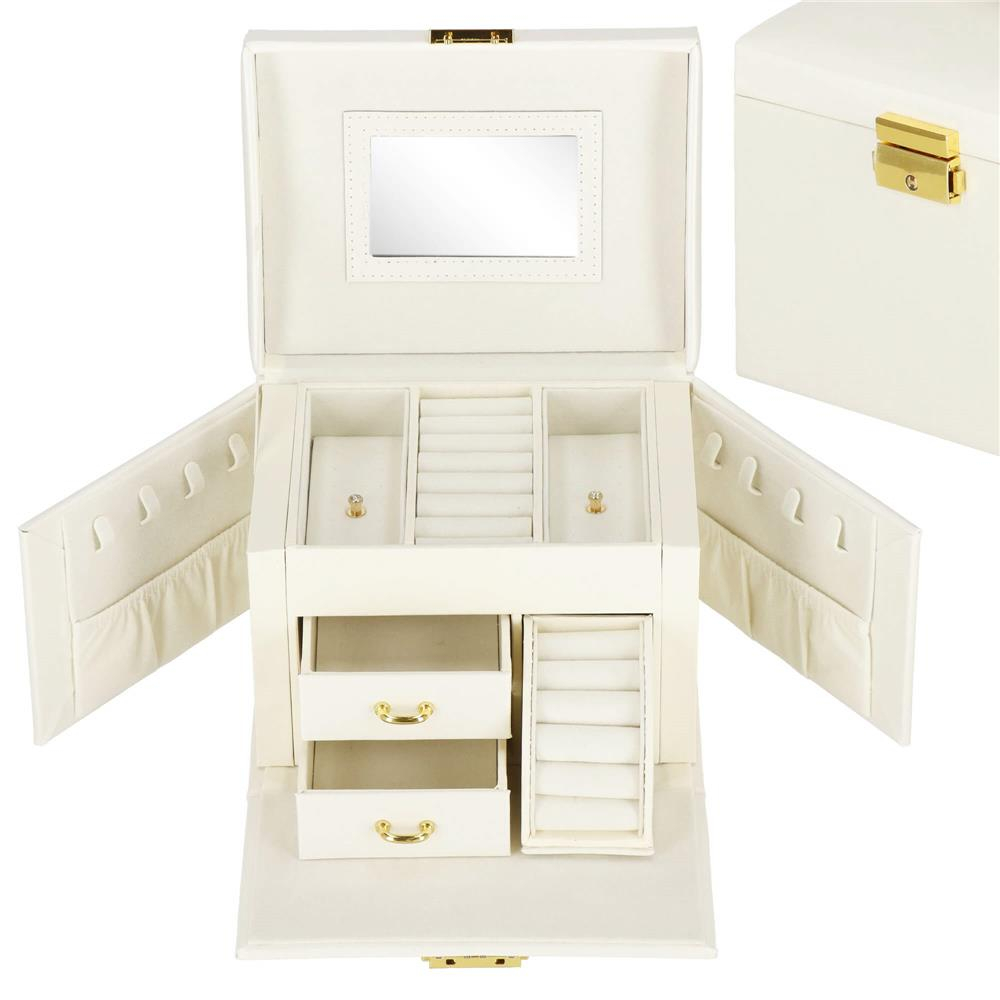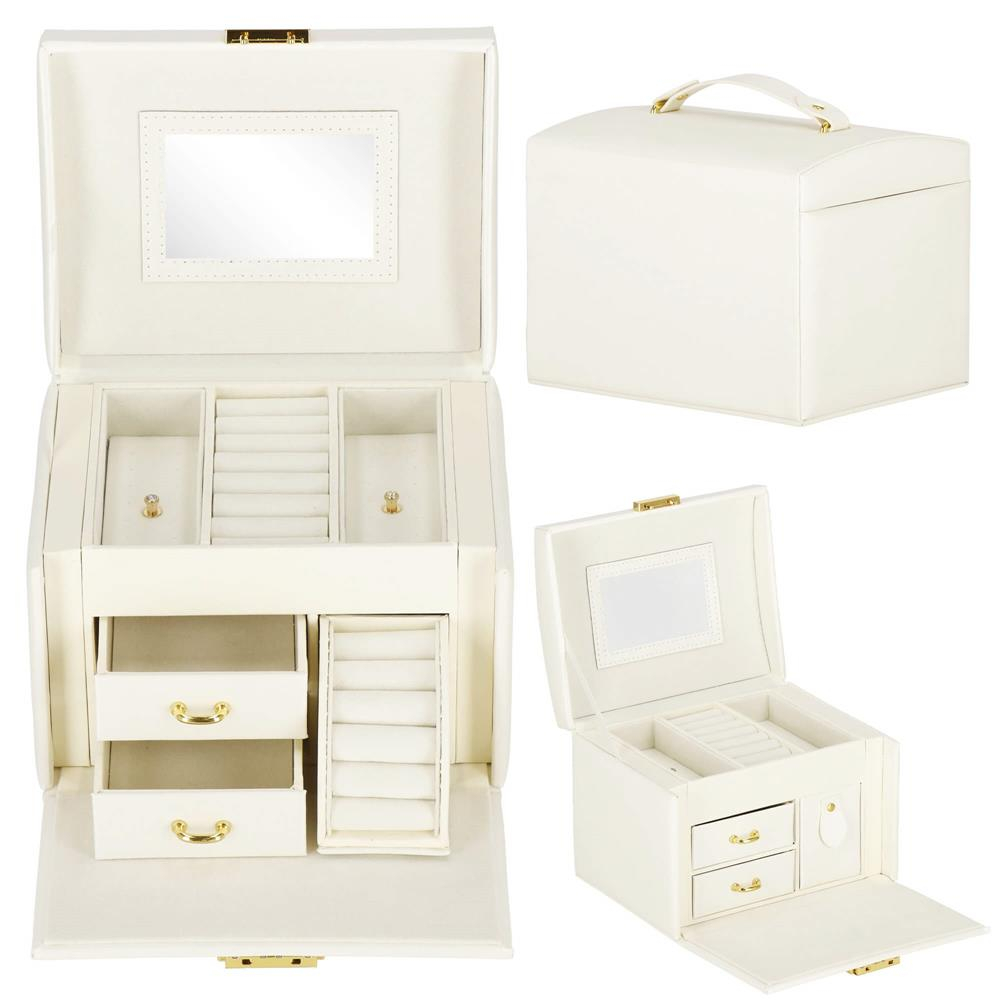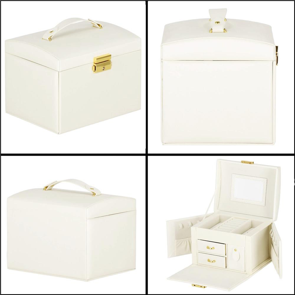 (DL) Cutie depozitare si organizare bijuterii, MDF, piele ecologica, 17,5 x 12 x 13,5 cm., crem