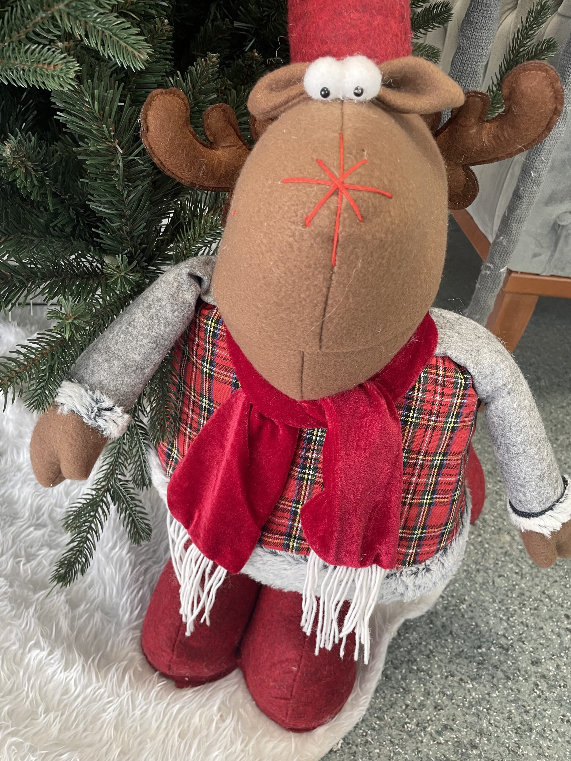 (DL) Figurina Craciun, Ren, picioare telescopice, inaltime extensibila 55-95cm