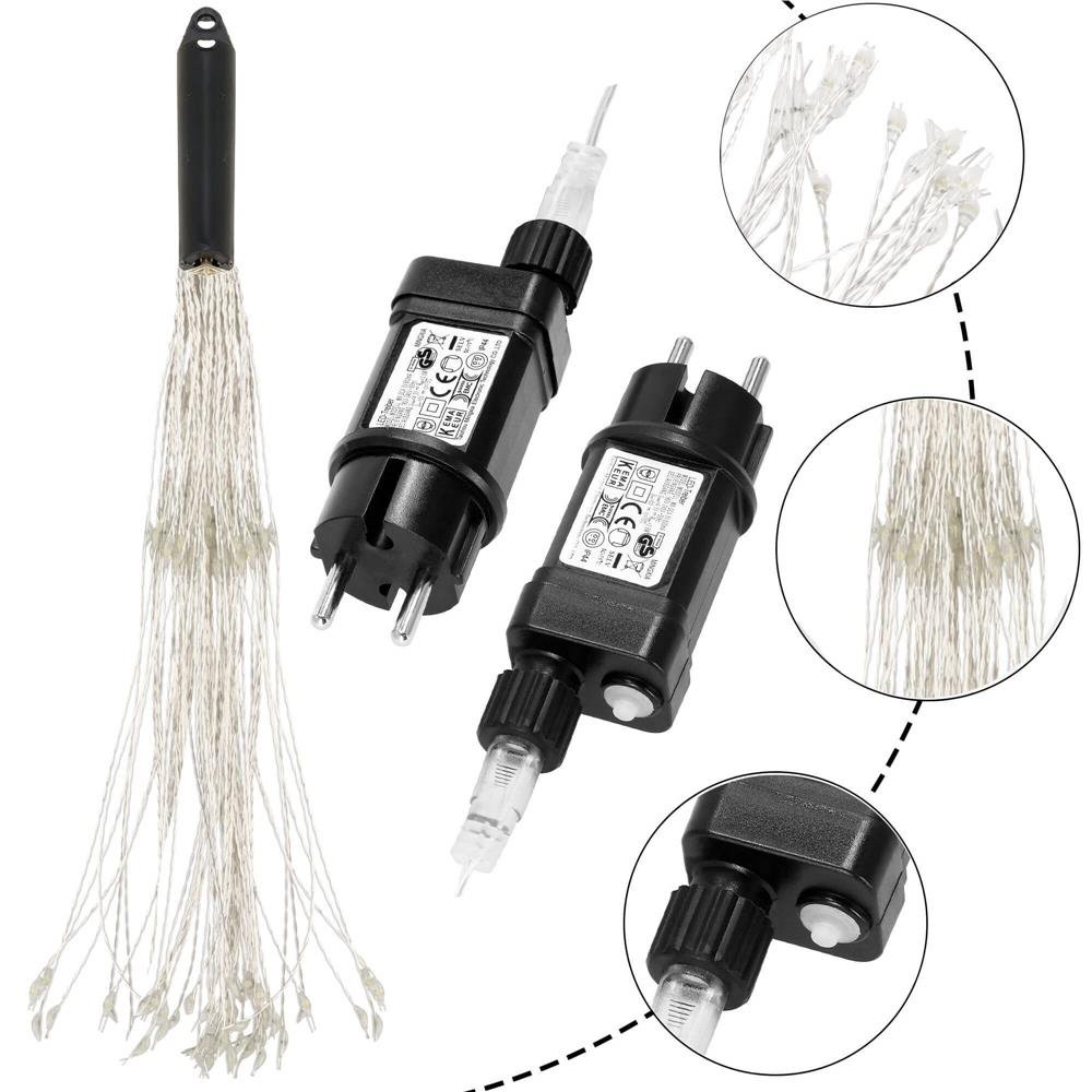 PARAMETRII: Stea exploziva contine 100 de LED-uriCuloare alb receProgramator cu 8 functii: combinatie, val, secventa, luminozitate, blit/sclipire lenta, estompare lenta, blit/sclipire, lumina constantaRamuri metalice, care...