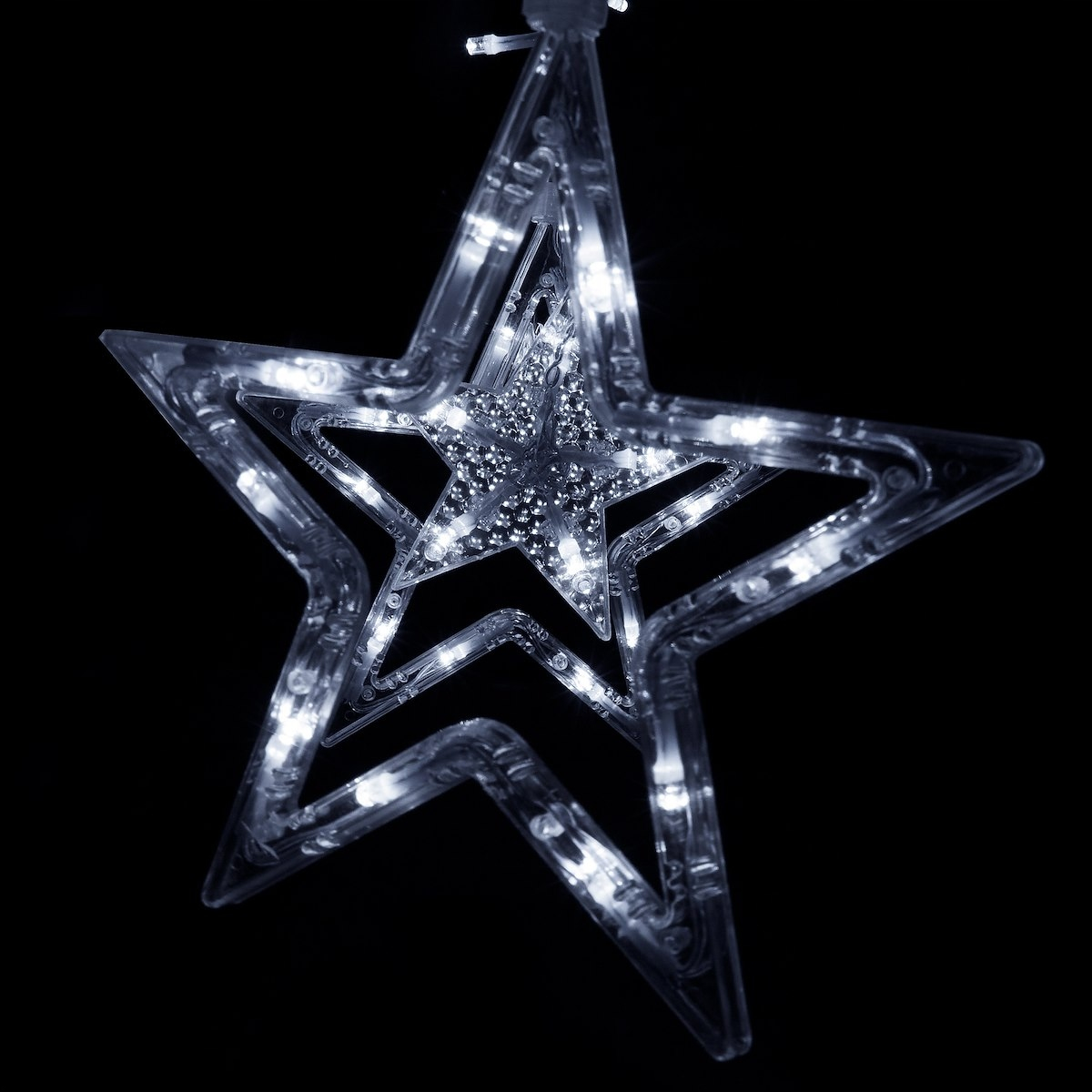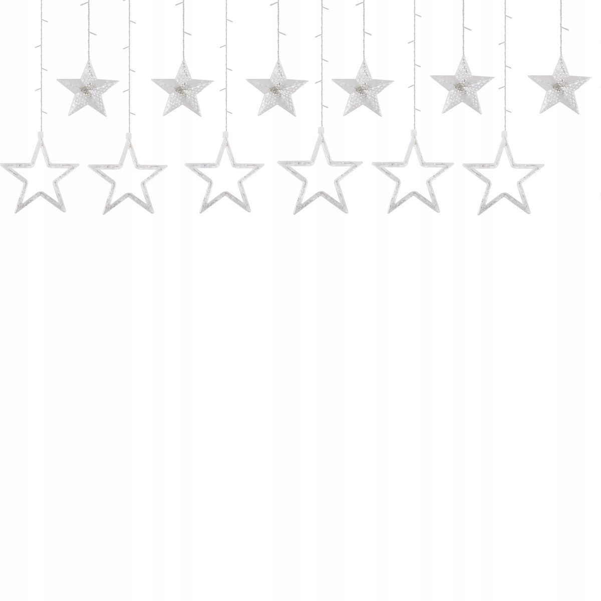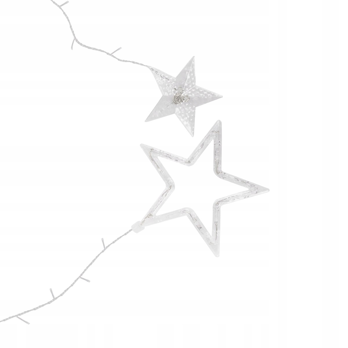 Culoare: alb receProgramator cu 8 functiiLungimea partii iluminatoare: aproximativ 2 mLungime cablu de alimentare: aproximativ 3 mAmplasarea turturilor la fiecare 18 cmLungime turturi: 54cm / 90cmLatimea stelelor: 9,5 si 18,5 cmTurturi 138 lumini LEDSursa de alimentare 220-240vLED-uri cu economie de energieAlimentat electricArderea unei diode nu opreste setul!Diode rezistente la apa - pot fi scufundate in apa - fara alimentareLampi pe fire de cupru durabile cu diametrul de 1,3 mm, rezistente la rupereClasa de etanseitate IP44Utilizare externa si internaPosibilitatea de a conecta pana la 3 bucati de lanturi usoare suplimentare Perdeaua de lumina are un program de iluminare cu 8 functii: combinatie, val, secventa, slo-glo, intermitent, schimbare lenta a culorii, intermitent, lumina constanta