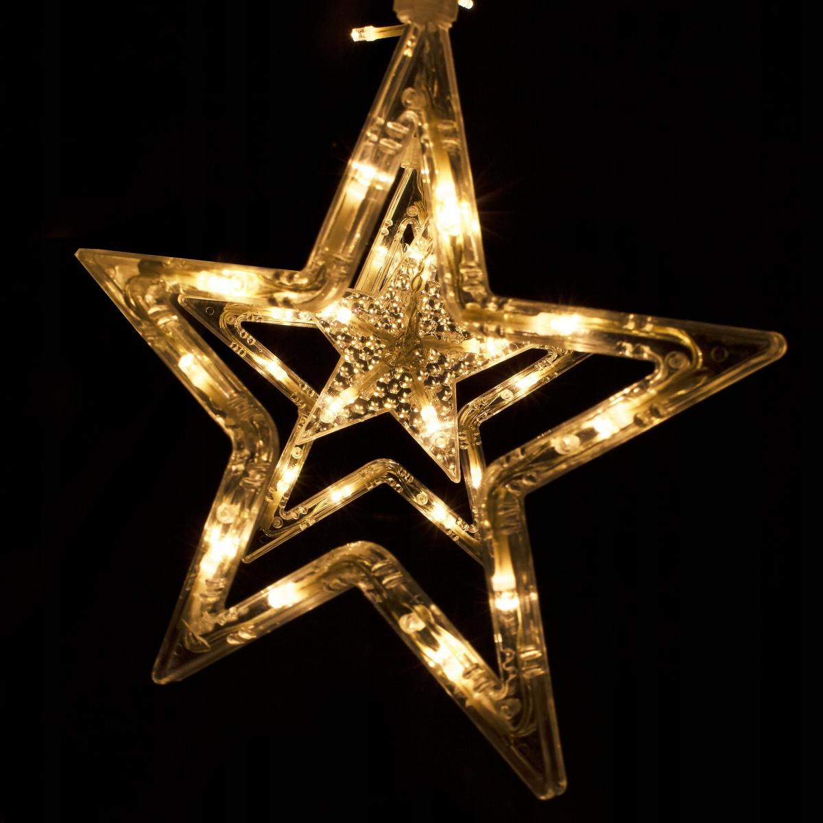 Culoare: alb caldProgramator cu 8 functiiLungimea piesei iluminante: aproximativ 2 mLungimea cablului: aproximativ 3 mAsezarea turturilor la fiecare 18 cmLungimea ghetului: 54cm / 90cmLatimea stelelor: 18,5 cmDimensiunea lunilor stea: 8x10 cmLampi de gheata 138 LED-uriAlimentare 220-240vLED-uri cu economie de energieAlimentat electricArderea unei diode nu opreste setul!Diodele impermeabile - pot fi scufundate in apa - fara alimentareLampi pe fire de cupru durabile cu diametrul de 1,3 mm, rezistente la rupereCE, certificat RoHSClasa de etanseitate IP44Utilizare externa si interna Perdeaua de lumina are un program de iluminare cu 8 functii: combinatie, val, secventa, slo-glo, intermitent, schimbare lenta a culorii, intermitent, lumina constanta