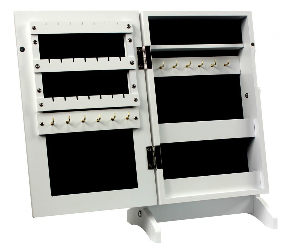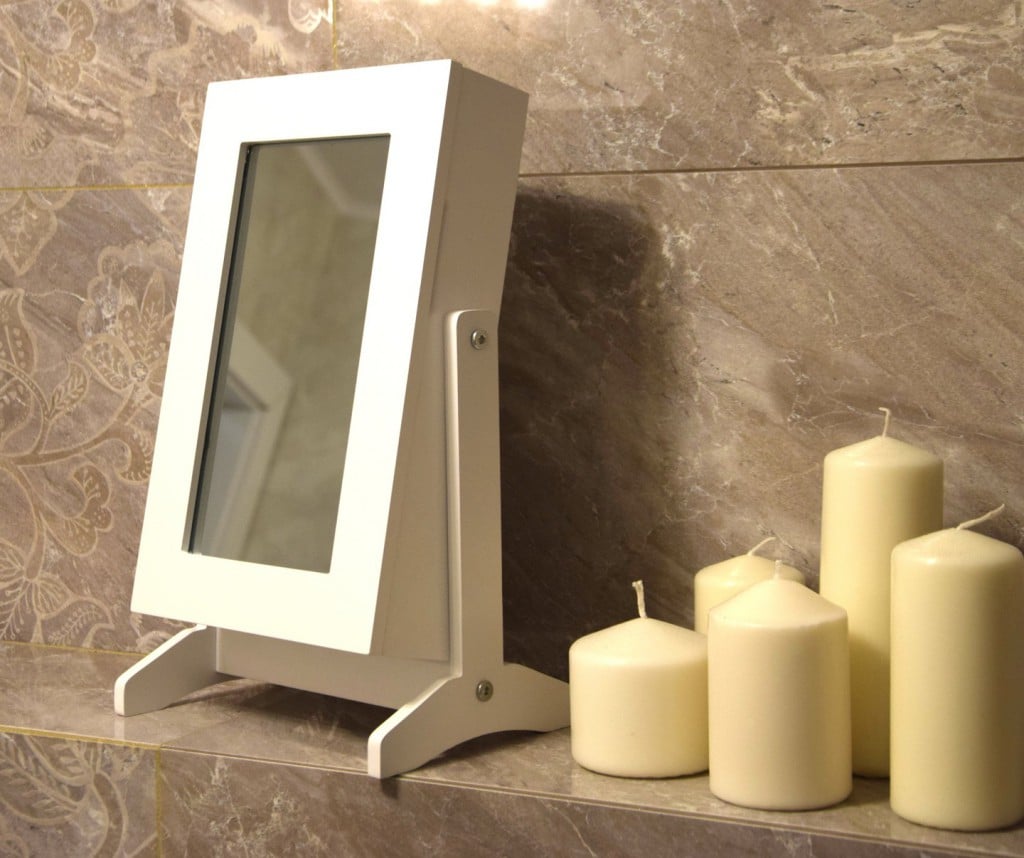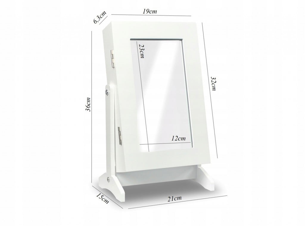 Dulapior de toaleta cu oglinda si spatiu de depozitare bijuterii, 21x36x15cm, alb