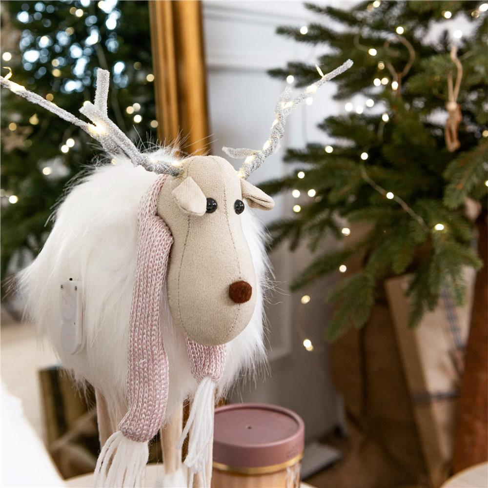 Inaltime totala: aproximativ 48 cm Latime totala: aproximativ 15 cm Lungime totala: 24 cm Material: stofa Coarne de ren: impletite cu fire micro LED Numar de LED-uri: 14 Culoare LED: alb cald Alimentare: baterie, 2xCR2032 (inclusa) Figurina de Craciun este un decor fermecator pentru casa sau apartamentul tau de Craciun. Creati o atmosfera fermecatoare de Craciun in orice interior asezand aceasta figurina minunata sub bradul de Craciun, pe semineul din sufragerie, pe pervazul ferestrei sau pe biroul din camera copiilor. Este tusa finala perfecta pentru designul interior in timpul sarbatorilor din decembrie. Culori frumoase si design captivant Material placut la atingere Posibilitatea de a amplasa decorul in orice incapere - acasa, in companie Colturi iluminate atmosferic cu fire LED alimentate de baterii  Aceasta silueta captivanta va aduce o dispozitie incantatoare de magie si o atmosfera unica de Craciun in casa ta, va decora fiecare camera - nu numai pentru copii - si te va ajuta sa te relaxezi si sa inspiri optimism.