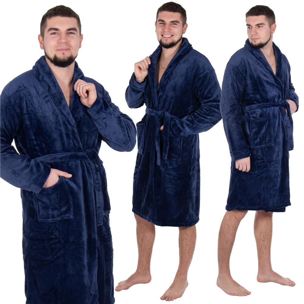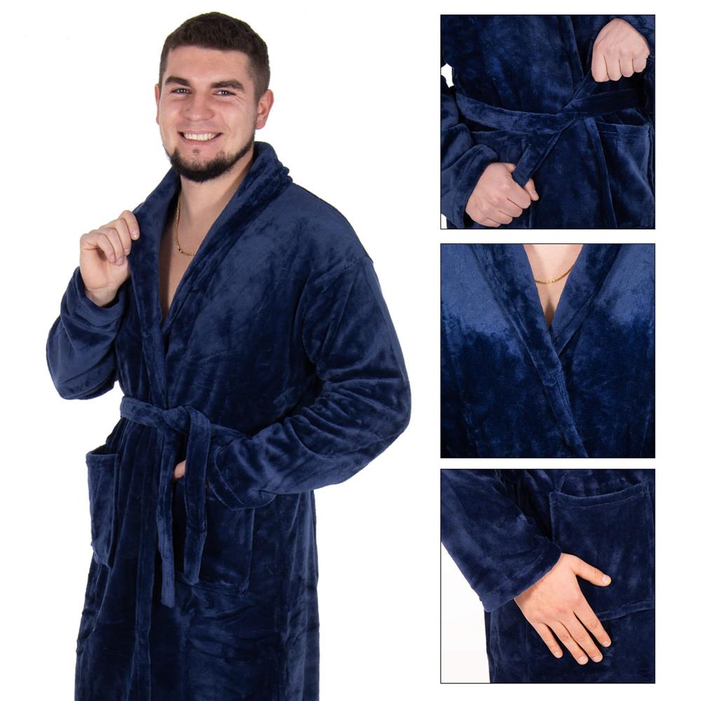 Halat de baie pentru barbati pana la genunchi, marimea XXL, albastru marin