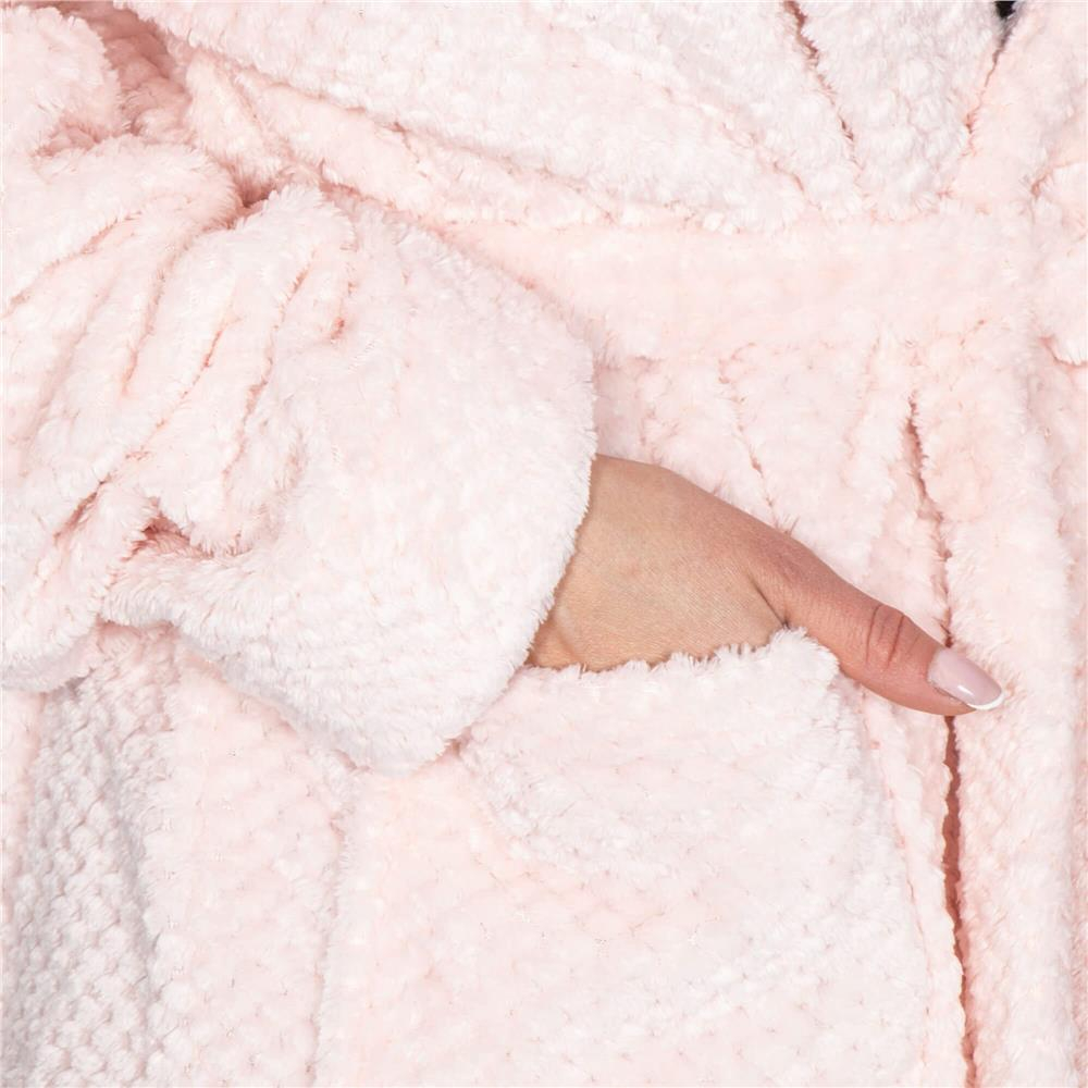 Halat de baie pentru femei pana la genunchi, cu gluga, marimea S/M, roz