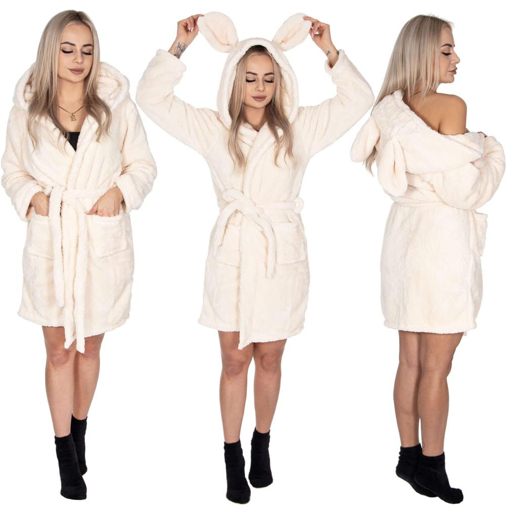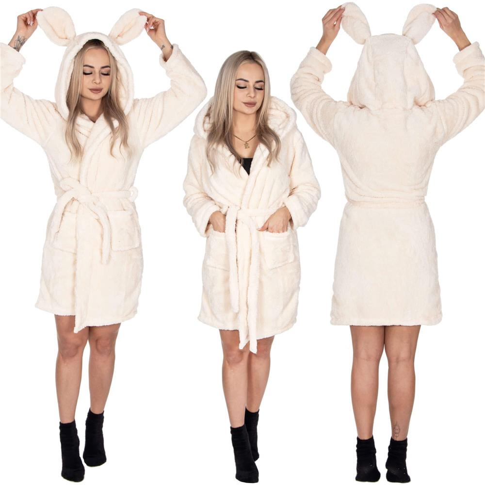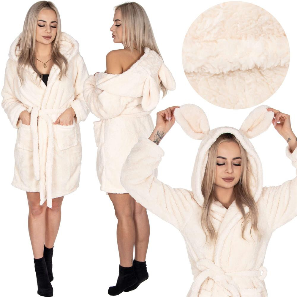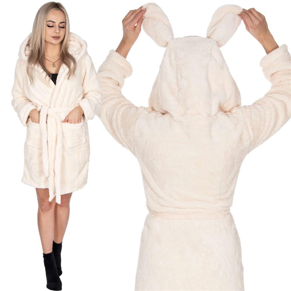 Halat de baie pentru femei pana la genunchi, gluga cu urechi , marimea S/M, bej