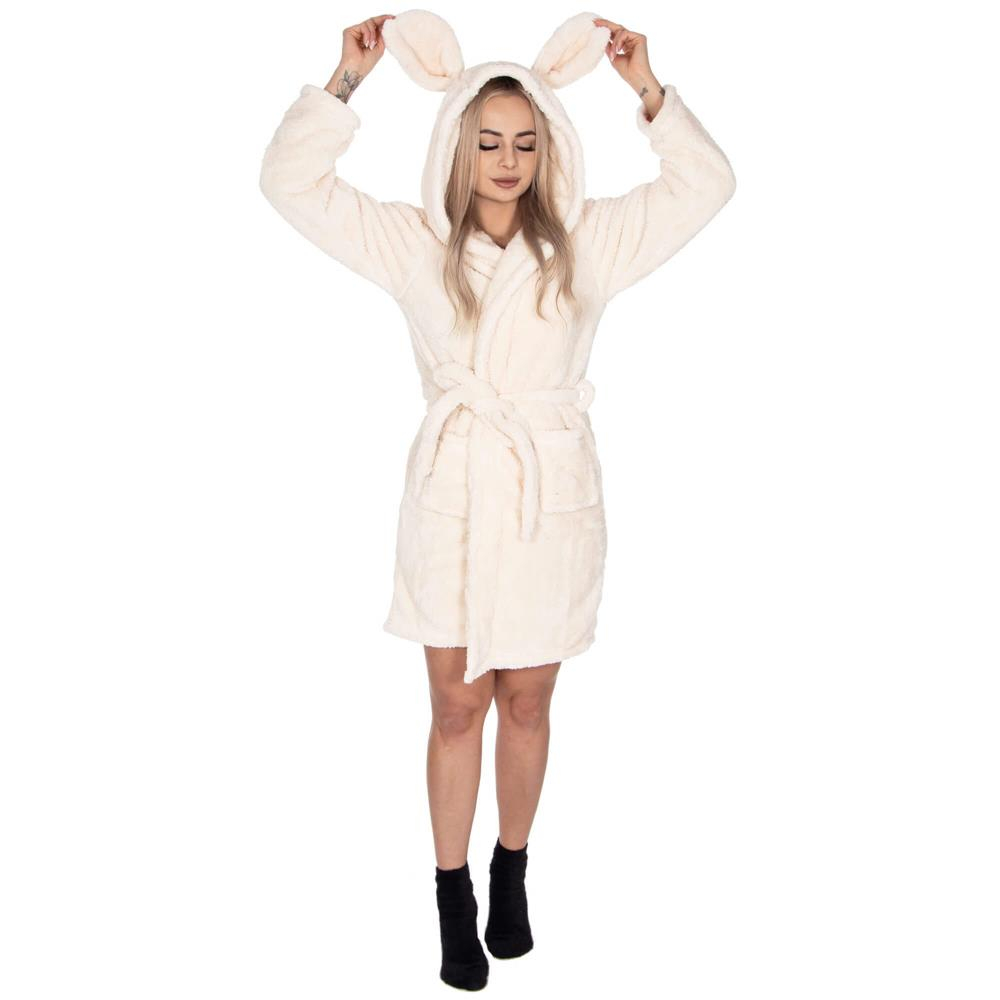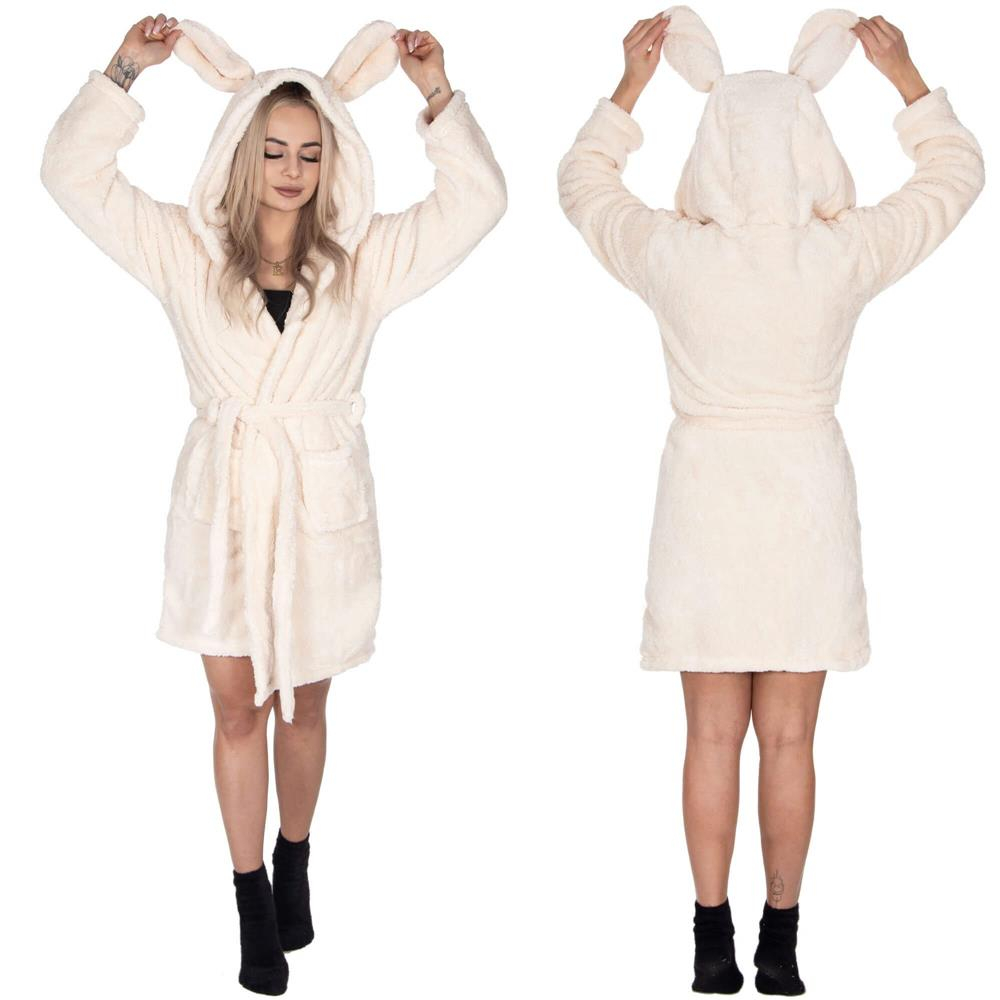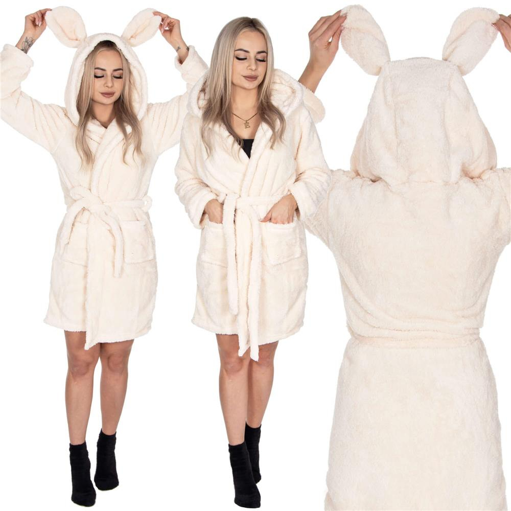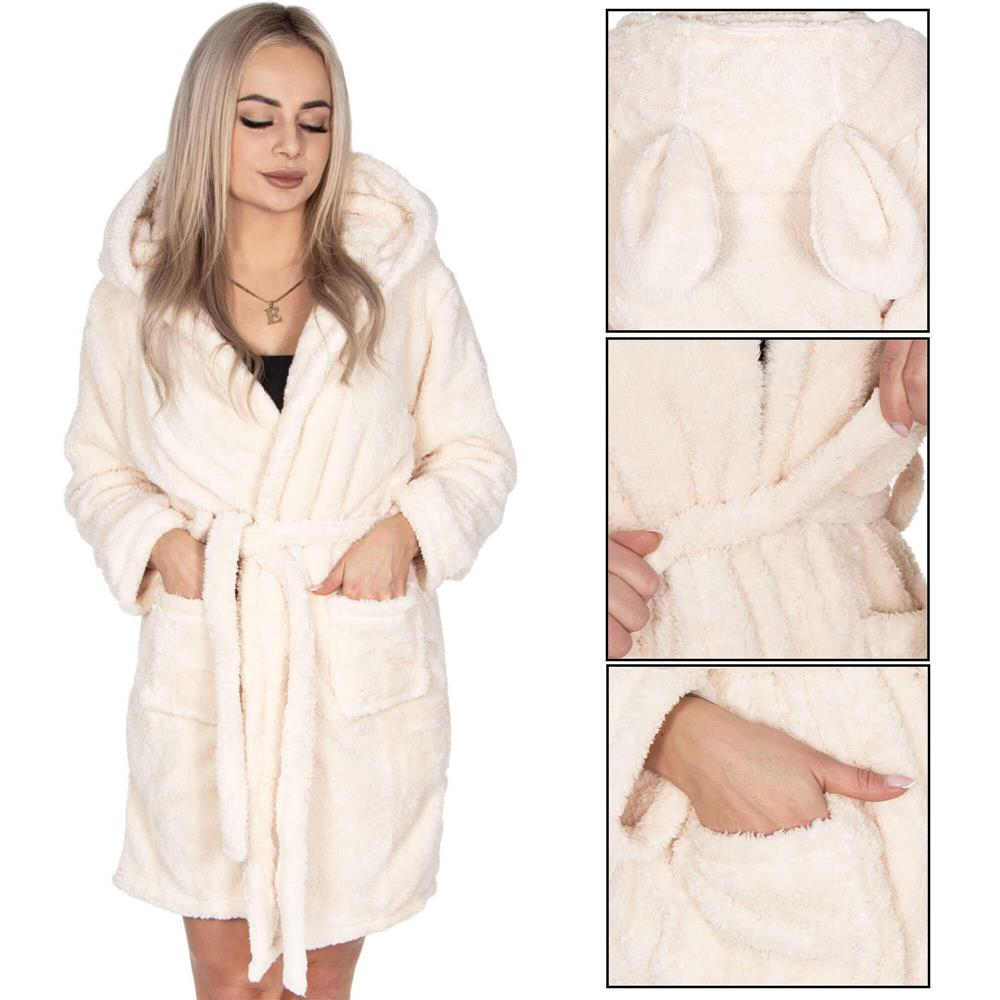 Halat de baie pentru femei pana la genunchi, gluga cu urechi , marimea S/M, bej