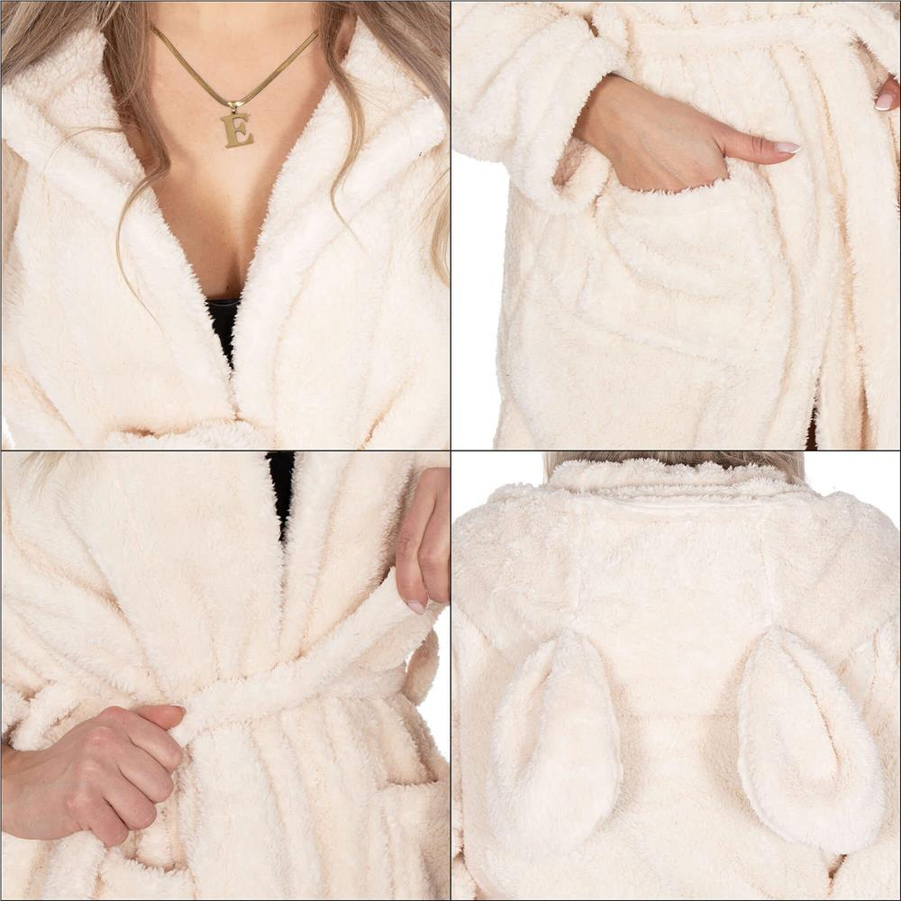 Material: poliester Culoare: bej Marime: S/M Dimensiuni: Lungime totala aproximativ: 92 cm Latimea sub brat aprox: 59 cm Latimea umerilor aprox: 51 cm Lungime maneci aprox: 58 cm Dimensiunea urechilor: 18 x 13 cm (lungime x latime) Puncte forte: 2 buzunare incapatoare, gluga mare cu urechi, curea de prindere in talie, Halatul de baie va va permite sa va bucurati de materialul placut si moale, asemanator plusului. Acesta a fost creat din fibre de inalta calitate, asigurand confort la fiecare pas.  Tesatura moale de plus - ofera confort si caldura.  Gluga - adauga eleganta si protectie impotriva frigului.  Doua buzunare frontale - spatiu de depozitare practic pentru obiecte mici.  Cureaua - reglabila pentru a se potrivi preferintelor dvs.  Durabilitatea tesaturii - plusul durabil isi pastreaza delicatetea si calitatea chiar si dupa multe spalari.  Perfect pentru a fi purtat atat dupa baie, seara cand va relaxati, cat si dimineata in timpul rutinei zilnice.  Ridicarea dispozitiei - purtarea halatului nostru de baie va poate ajuta sa va imbunatatiti starea de spirit, oferind un sentiment de placere. Halatul nostru de baie nu numai ca va va fermeca prin aspectul sau placut, dar va va oferi si o functionalitate nepretuita. Cu o gluga care adauga o nota eleganta si buzunare frontale practice, veti avea intotdeauna loc pentru telefon, telecomanda sau obiecte mici.. In plus, este prevazut cu o curea practica in talie, permitand o potrivire perfecta. Halatul de baie va deveni partea preferata a ritualului tau zilnic de relaxare. Asortati-l cu ceaiul sau cartea preferata si simtiti cum fiecare zi devine putin mai speciala.