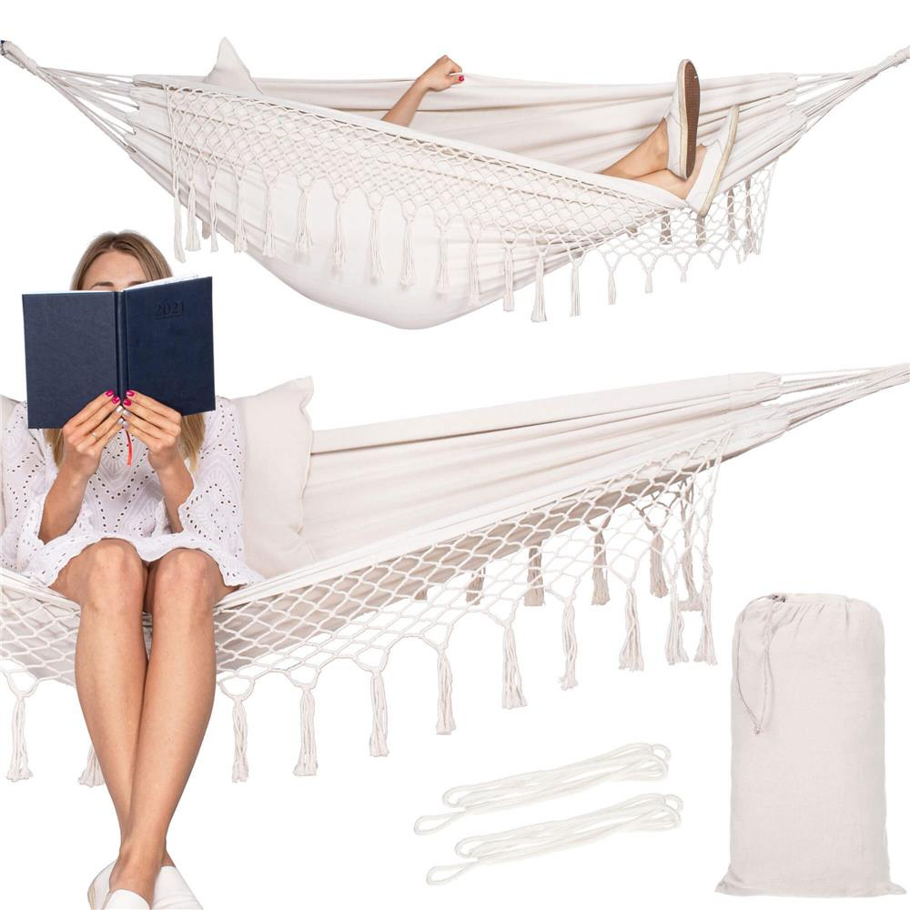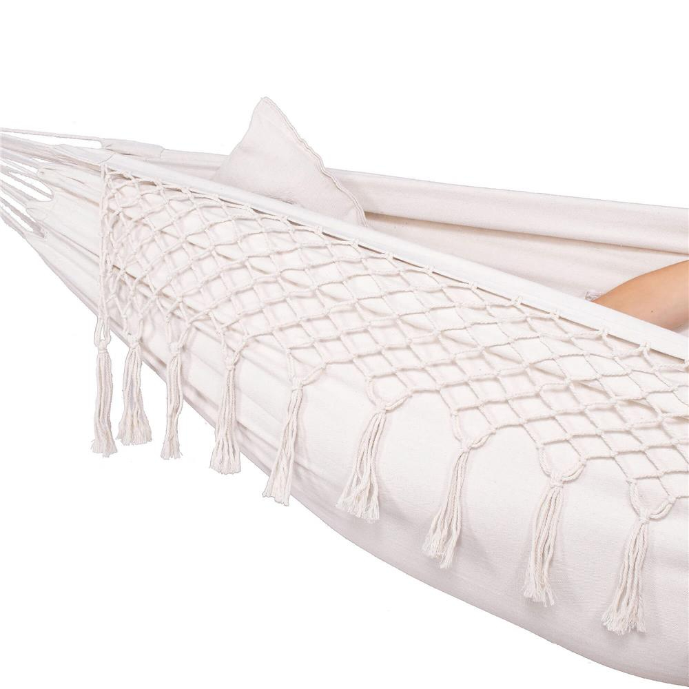 Hamac doua persoane cu franjuri si 2 perne, 200kg, 200×150 cm, bej