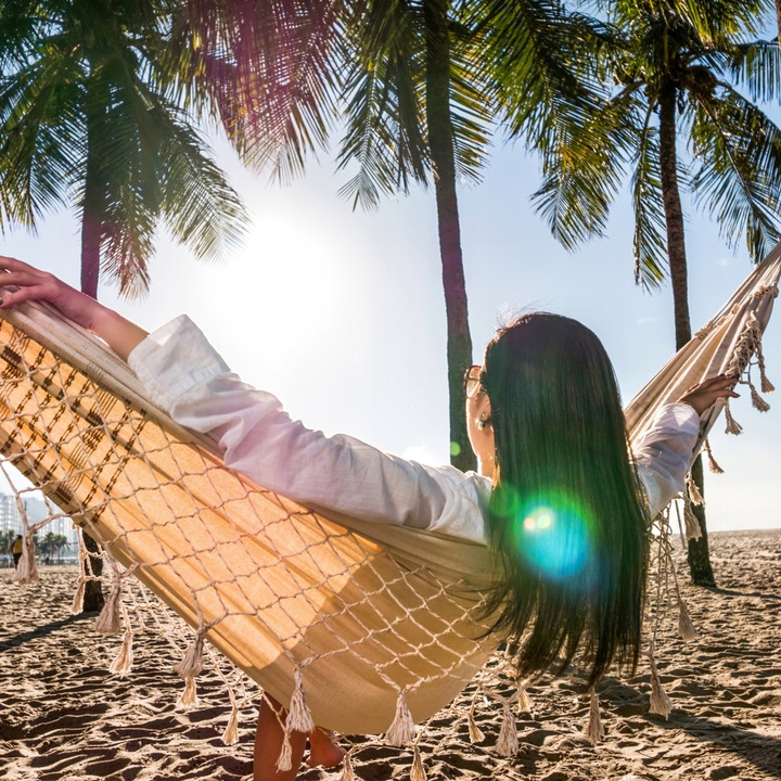 Culoare: nuante de bej Dimensiuni: 200x150 cm Material: bumbac, poliester Sarcina maxima: 200 kg Franjuri la moda Doua perne incluse Instructiuni de asamblare incluse in set Hamacul este fabricat din materiale naturale, inclusiv bumbac, care garanteaza permeabilitatea maxima a aerului. Materialul usor, dar durabil, se adapteaza perfect la corp, permitand utilizatorului sa se odihneasca si sa se relaxeze complet pe el. Hamacul are bucle de agatat pe ambele parti, astfel incat il puteti agata oriunde. Atunci cand este pliat, ocupa foarte putin spatiu, astfel incat sa il luati cu dvs. in vacanta nu este o problema. Instructiunile de asamblare sunt incluse. Greutatea maxima admisa de utilizare este de 200 kg. Material moale si durabil Se adapteaza perfect corpului Permeabilitate maxima la aer Instalare oriunde Instructiuni de instalare incluse in kit Franjuri la moda Doua perne incluse