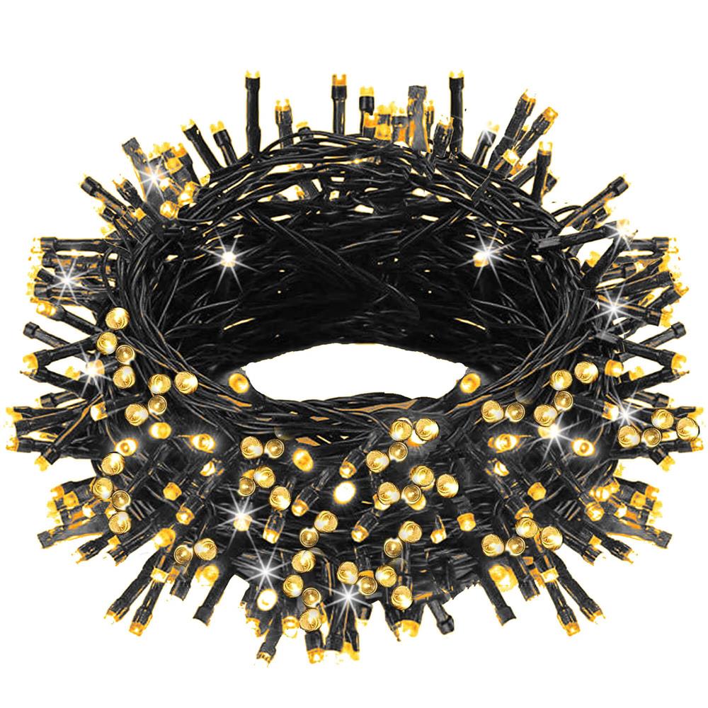 Instalatie lumini pentru bradul de Craciun, 17,5 metri, 300 LED-uri, 8 functii, alb cald