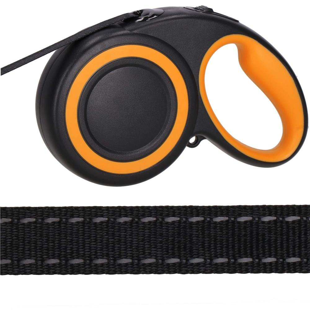 Lesa automata retractabila, pentru rase mari pana la 50kg, 500 cm, negru portocaliu