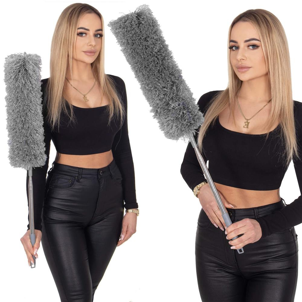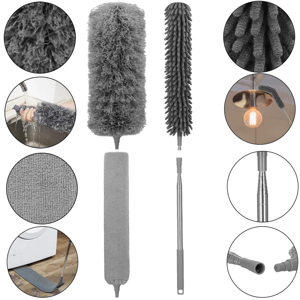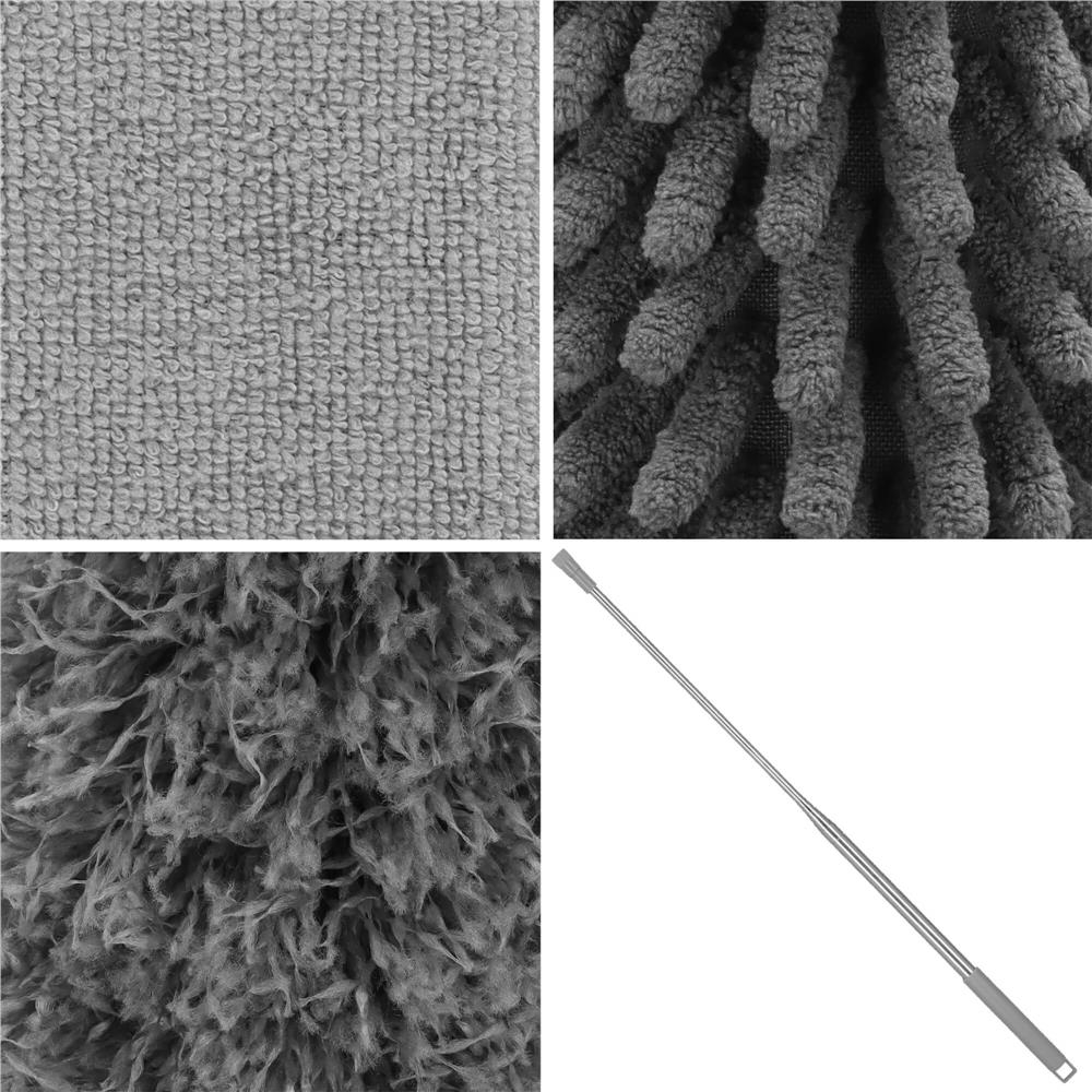Material: poliester, microfibra, otel inoxidabil Culoare: gri Tip: praf telescopic Numarul de elemente din set: 4 Dimensiuni: Lungime minima cu varf pufos: aproximativ 75 cm...