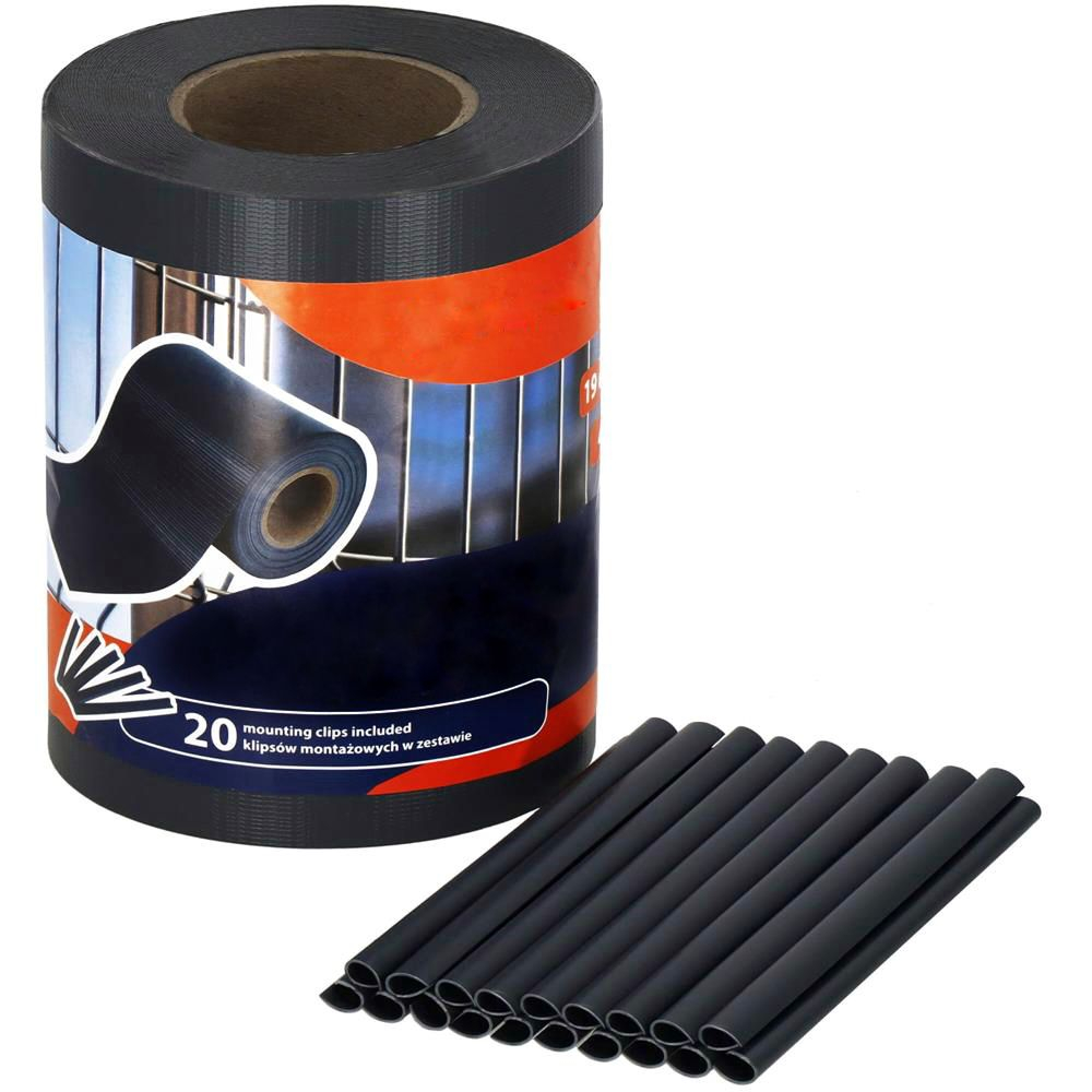 PARAMETRI: Material: PVC Greutate: 450 g/m2 Culoare: Antracit (RAL: 7016) Protectie UV In plus: 20 cleme de fixare Date despre clipurile de fixare: Material: polietilena Culoare: antracit (nuanta de plasa) Numar de cleme per set: 20 Dimensiuni: Lungime ochiuri de plasa: 35 m Latimea ochiului de plasa: 19 cm Grosimea ochiului de plasa: 0,2 mm Lungimea clemelor de fixare: aprox. 19 cm Latimea clipurilor: 7,5 mm Inaltimea clemelor: 1,25 cm Orificiu in clipsuri: 5,5 mm Banda de imprejmuire este o solutie moderna pentru a crea o instalatie de ingradire estetica si functionala. Produsul nostru, datorita proprietatilor sale deosebite, este o alegere ideala: protectie impotriva radiatiilor UV si a decolorarii, material durabil si solid si multe alte avantaje va vor face sa va iubiti gardul din nou! Rezistent la UV Cleme de montare incluse Cresteti functionalitatea gardului dvs. prin imbunatatirea intimitatii Material durabil si solid Rezistent la conditiile meteorologice daunatoare Imbunatateste aspectul si estetica gardului dvs. Extrem de usor de instalat, fara a utiliza unelte suplimentare Nu absoarbe murdaria Nu necesita intretinere suplimentara Produs universal - compatibil cu gardurile standard Banda nu se decoloreaza la soare si nu se deformeaza atunci cand este expusa la temperaturi Reducerea zgomotului - ideal in zonele aglomerate  De asemenea, este ideala pentru fixarea balustradelor de pe terase sau balcoane. Teseti banda prin tijele de gard. Infasurati capatul benzii in spatele ultimei bare de gard (taiati banda daca este necesar). Fixati banda cu o clema. Si gata! Instalarea benzii de gard este extrem de usoara si nu necesita utilizarea unor unelte speciale suplimentare! Clipurile pentru banda de gard au dimensiuni universale si caracteristici deosebite care le fac ideale pentru rolul lor.  Setul include 20 de bucati in aceleasi culori ca si banda de gard.